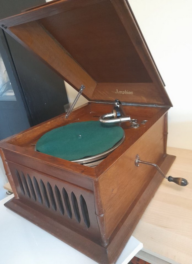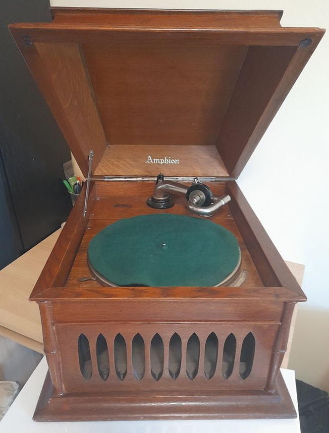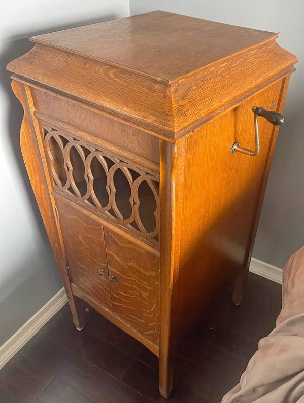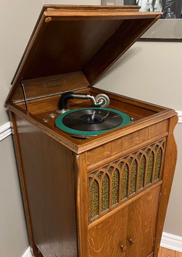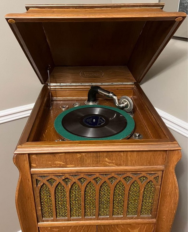 A late model Amphion phonograph for sale through Facebook Marketplace in 2024 in Edmonton, Alberta.
