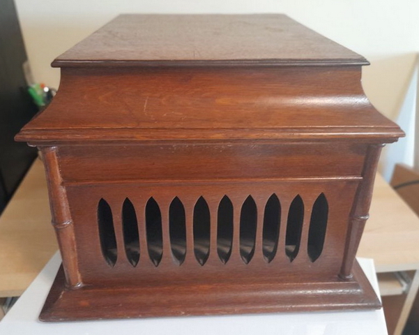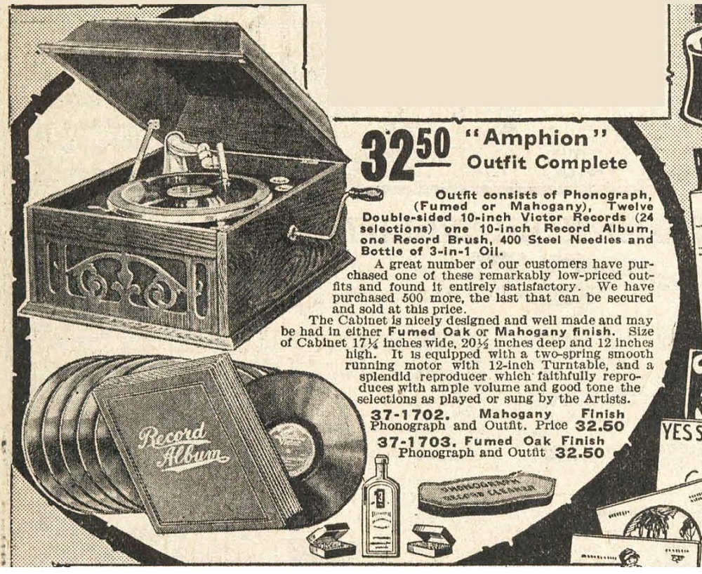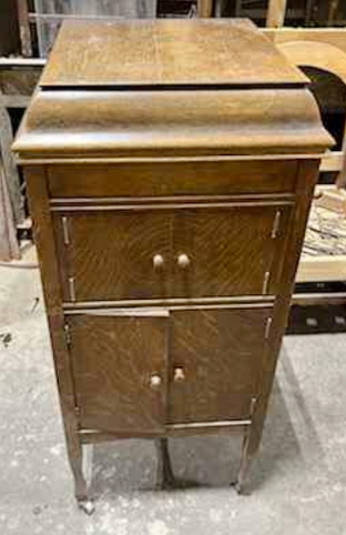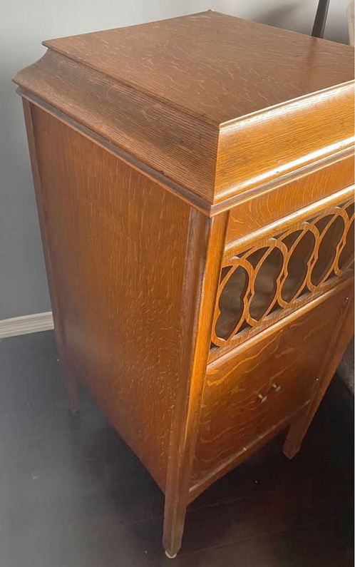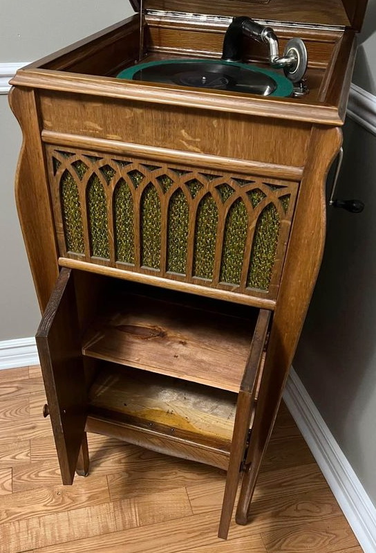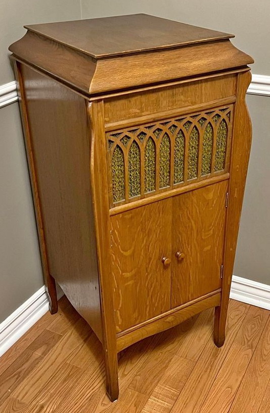 An upright Amphion in oak identical to a model advertised by Eatons in 1926. For sale in View Royal, B.C. in 2024 through Facebook Marketplace. Submitted by Lance Husoy.