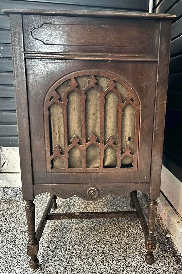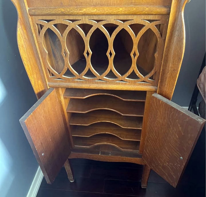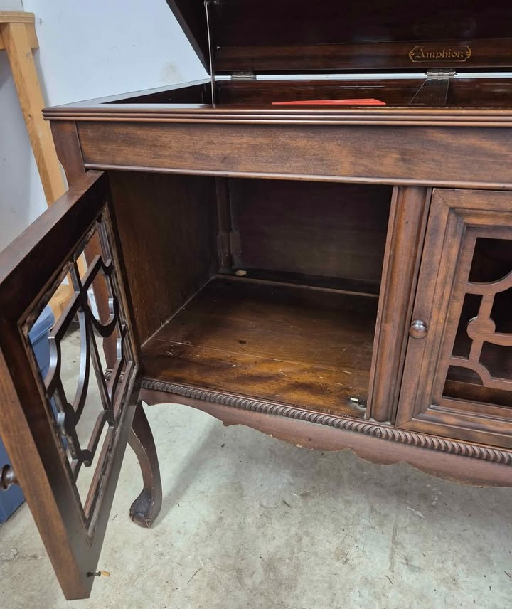 A console model Amphion phonograph for sale through Facebook Marketplace in 2025 in Pitt Meadows, B.C. Submitted by Lance Husoy.