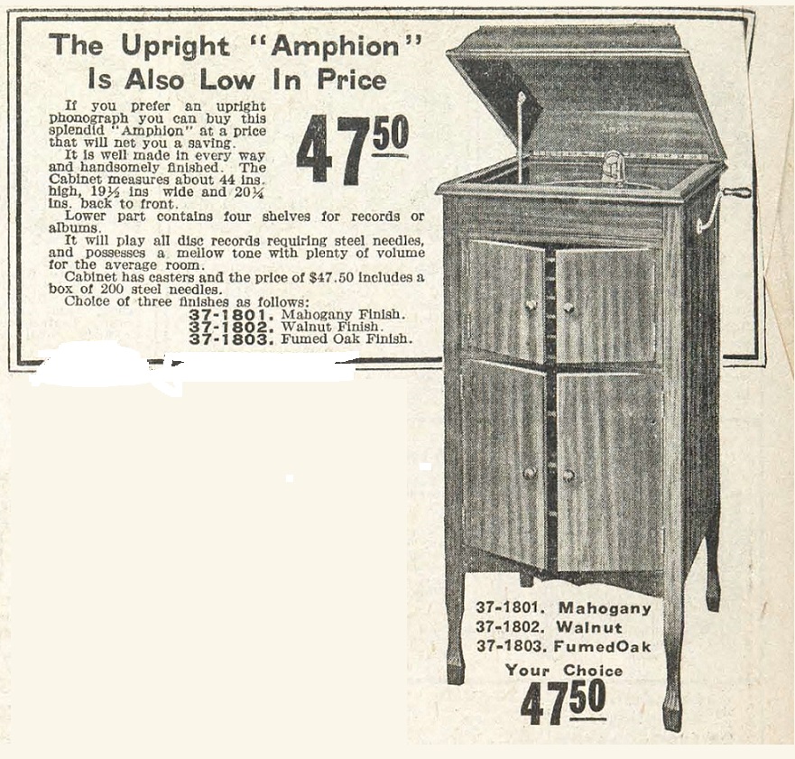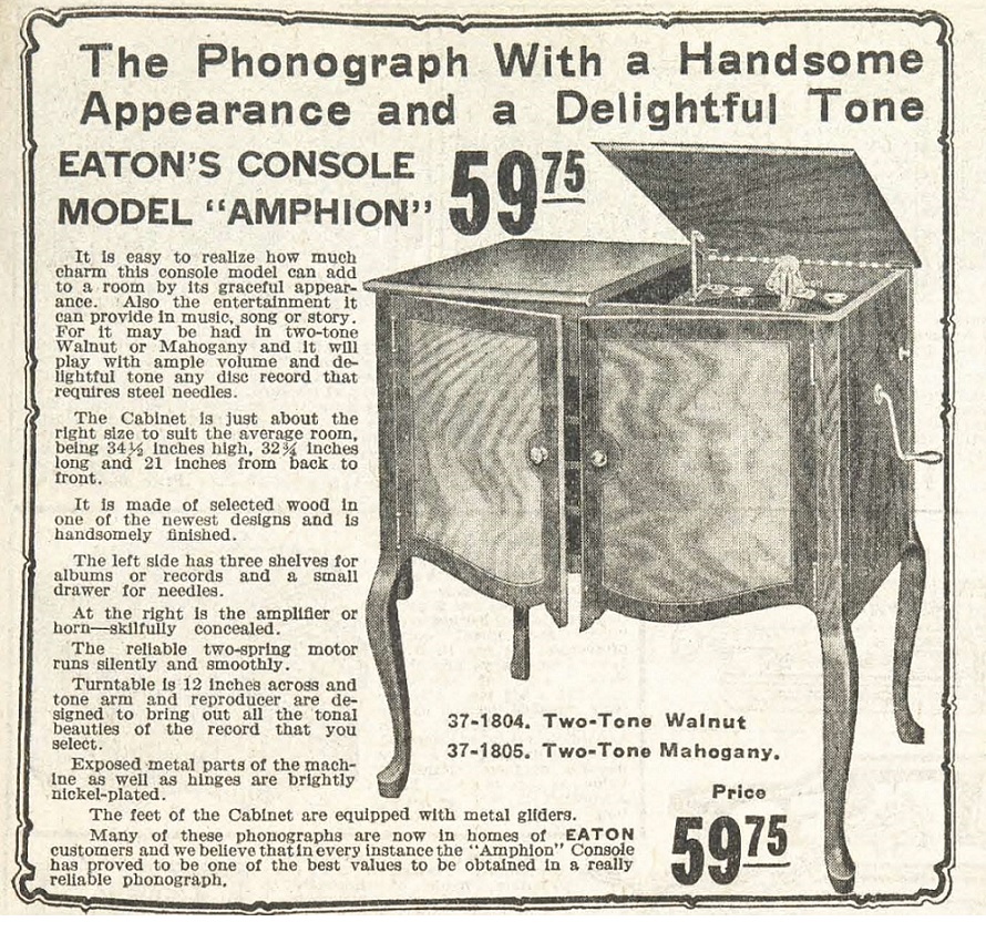 An upright Amphion in mahogany that matches a 1926 Eatons ad above. For sale online in November 2010: