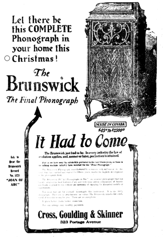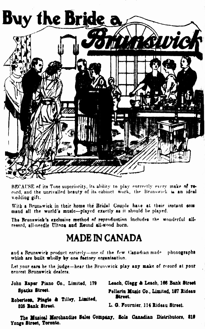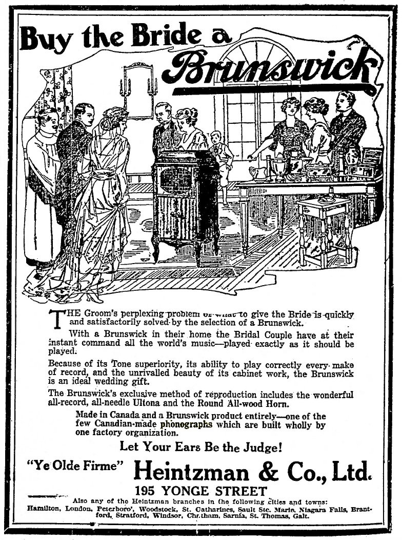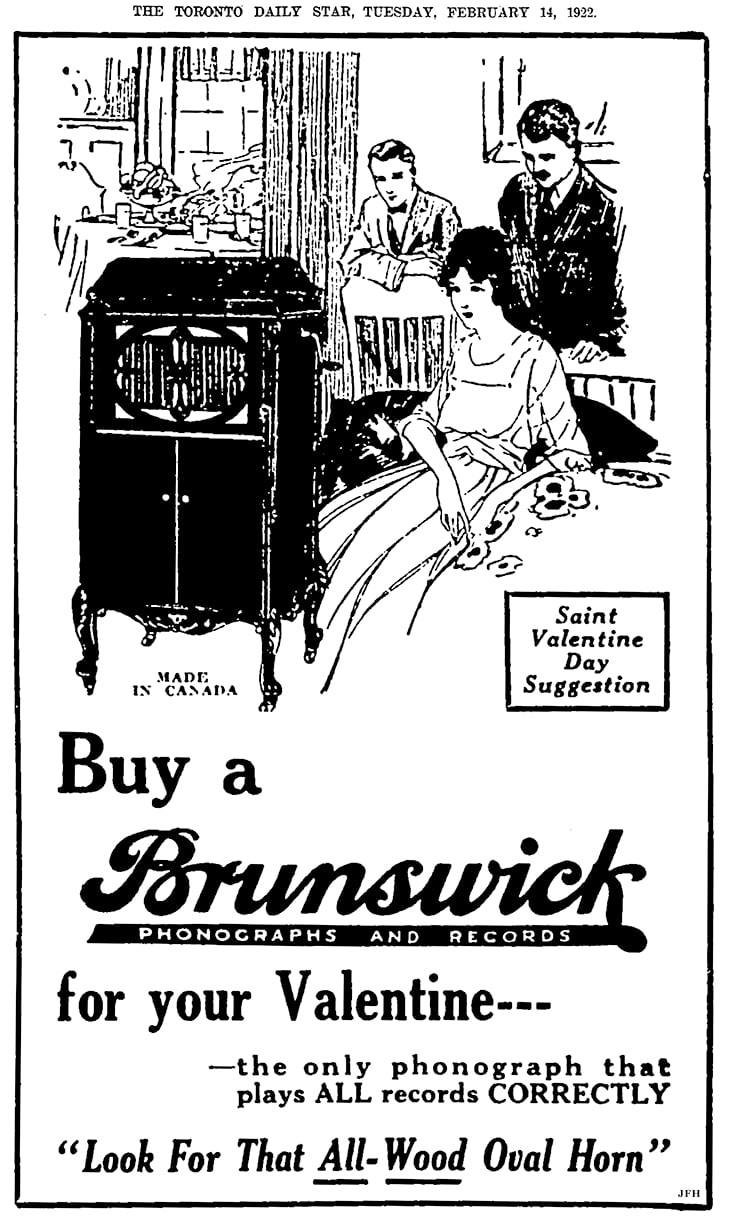 Toronto Daily Star, January 12, 1922, p. 7 - "Every Brunswick Phonograph is made in Canada."