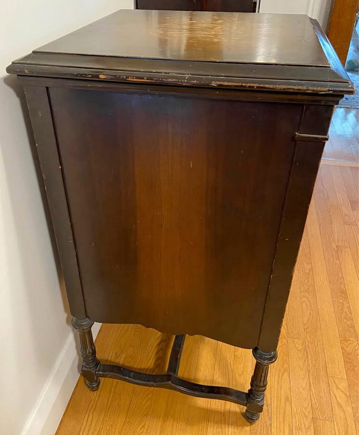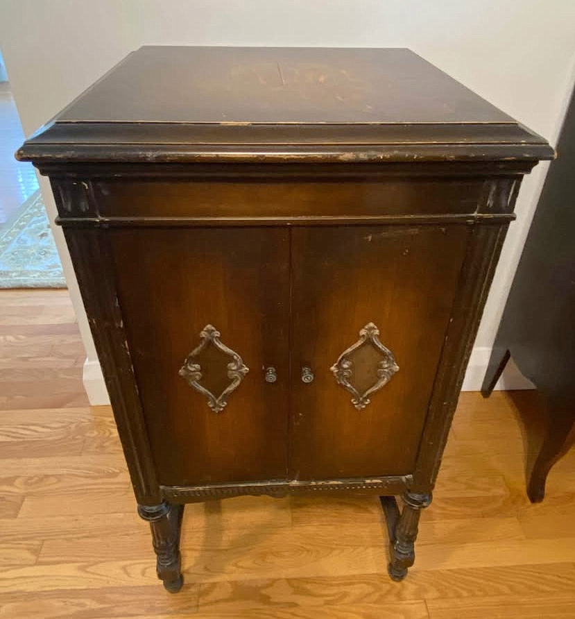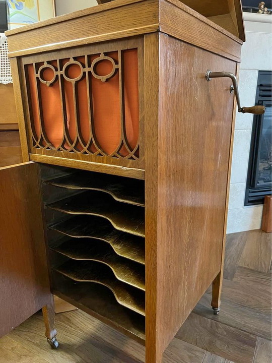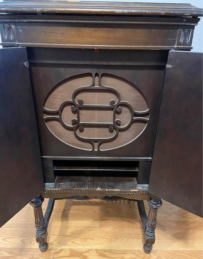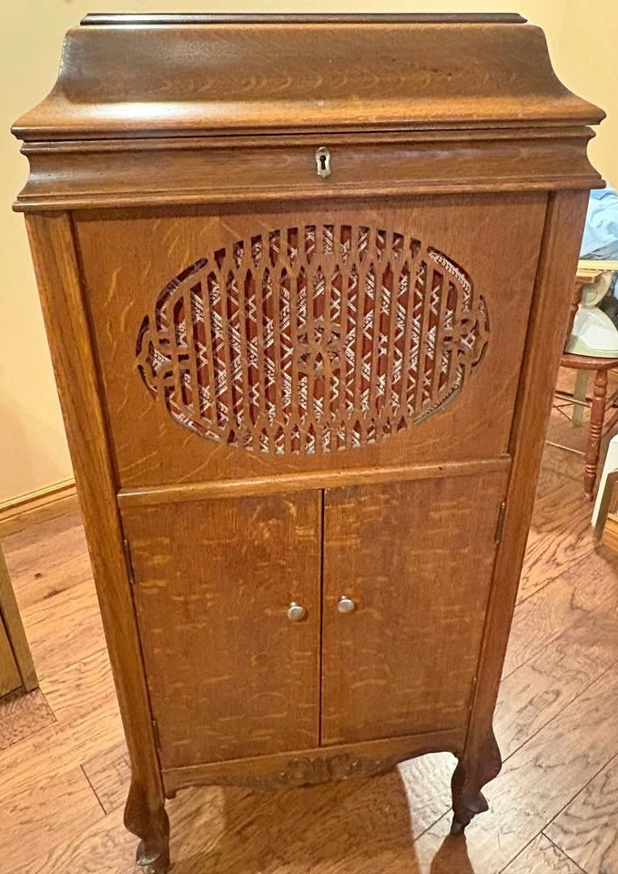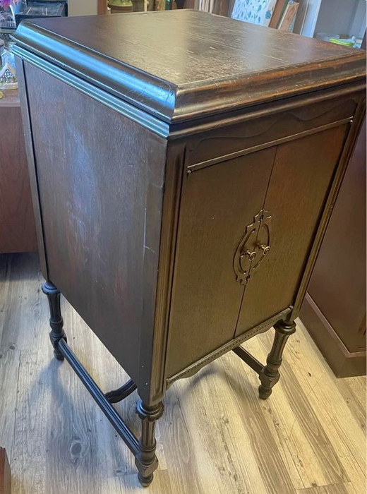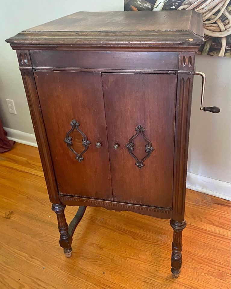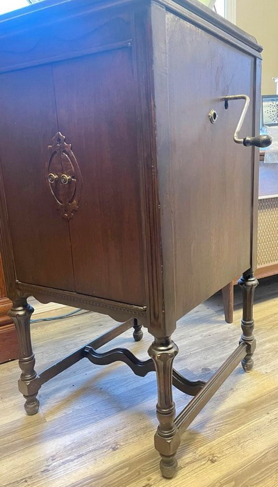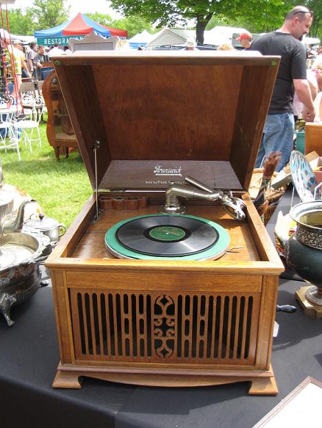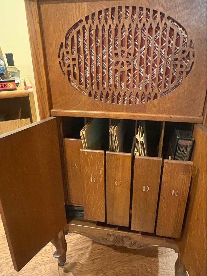 A console model Brunswick phonograph for sale in Cambridge, Ontario in 2024.