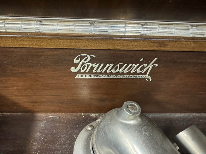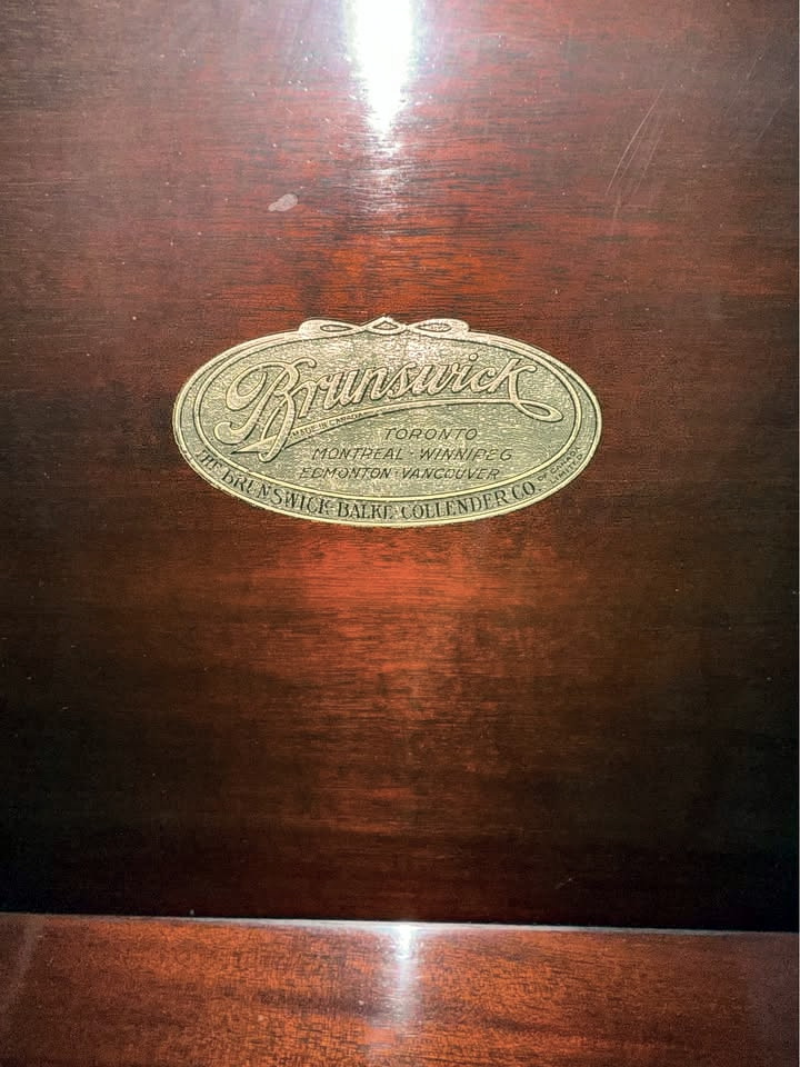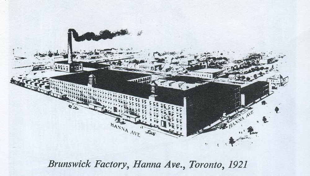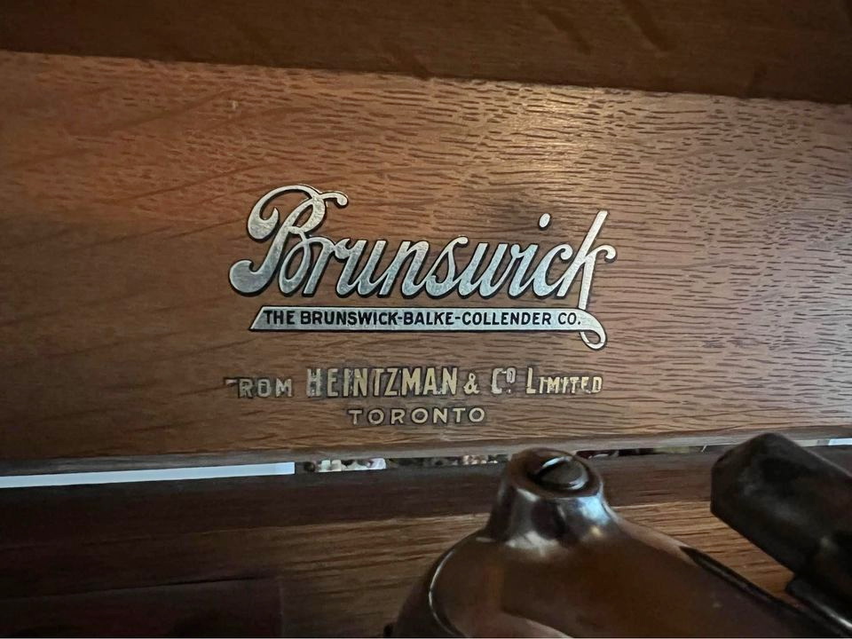Regarding Brunswick, Balke, Collender, and their first production in Toronto by Sept. 1916 (all courtesy BP): CMTJ (Canadian Music Trades Journal), Aug. 1916, p. 95 (Tor. Ref.) - "The Brunswick Balke Collender Co., Toronto ...are bringing out a line of talking machines. These are already being manufactured by the Chicago Factory." CMTJ, Sept. 1916, p. 75 "A couple of types of the Brunswick phonograph are now on display at the showrooms of the Brunswick Balke Collender Co. Toronto. These are the production of their own factory at Toronto, the cabinets being in mahogany." London Free Press newspaper (AO), Nov. 1, 1919, stated that "Woodstock Lands a Big Factory. The Canadian Products Company is manufacturing for Brunswick, in Woodstock as well as Toronto. Betty Pratt's snapshots of the present Brunswick building with Brunswick painted on the brick on the north facade. The location is Hanna Ave, Dufferin and King area, and the current building is occupied by the restaurant, The Academy of Spherical Arts. Here they have a collection of antique billiard tables.