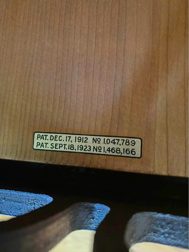 This machine was for sale at an outdoor antique show May 2009, southern Ontario (photos by KW). It was "Sold by Frank Stanley, Toronto". The Stanley Piano factory was located at 121-135 De Grassi St. and 32-50 Cummings St., and the store at 14 Temperance St., Toronto. Frank Stanley is also an agent for Brunswick Phonographs and Records at 241 Yonge St. Downright Upright, Wayne Kelly, p. 120: "Stanley acquired the assets of the Cecilian Piano Co. [in 1922]. Two years later, however, the firm failed. Mason & Risch picked up the stock at auction."