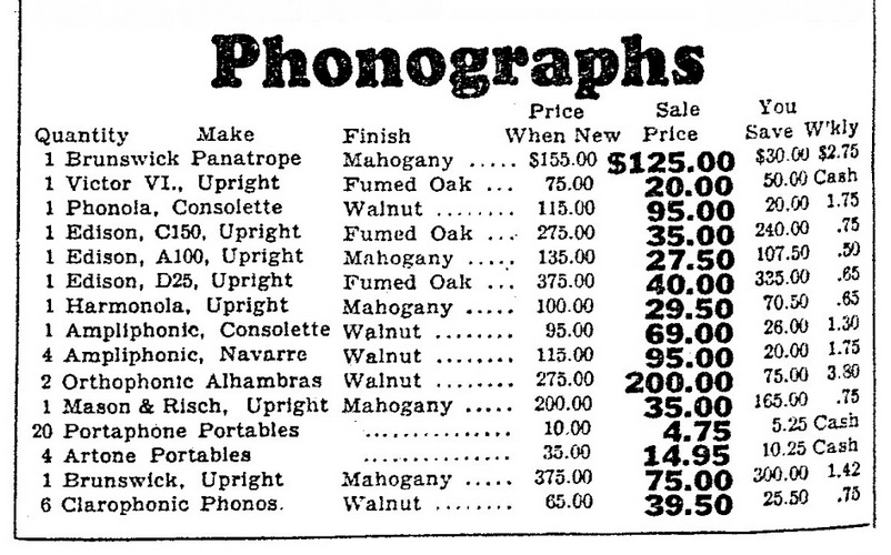 Toronto Daily Star, September 21, 1928, p. 17. An R.S. Williams Co. Limited ad including one used Clarophonic phonograph, and detail of ad.