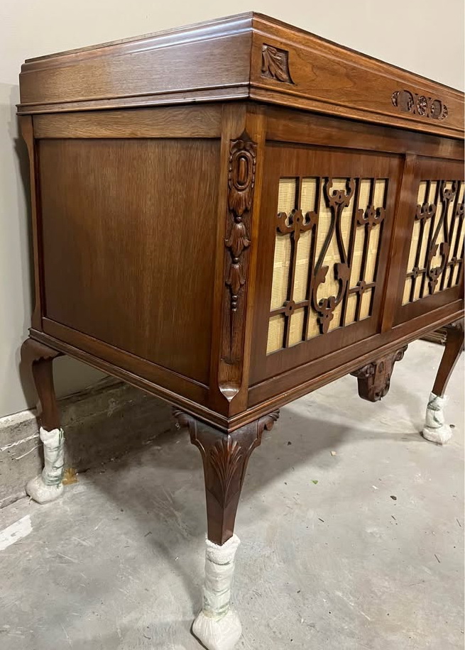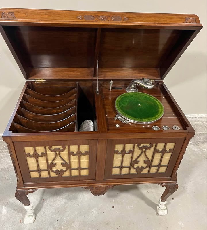 A spectacular console model Classic phonograph in showroom condition. This machine matches the depiction in the 1923 Kamloops Telegram ad above. Listed through Facebook Marketplace in Squamish, B.C. in 2025 and submitted to the Canadian Antique Phonograph Project by Lance Husoy.