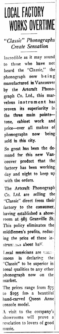 Vancouver Sun, September 21, 1922, p. 13.
