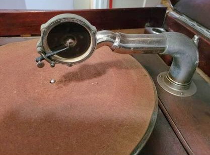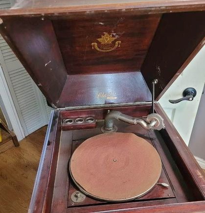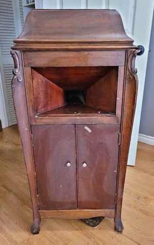 A Classic mahogany upright phonograph for sale on Facebook Marketplace in Innisfil, Ontario in 2024.