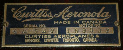 Made by Curtiss Aeroplanes Motors, Limited, Toronto, Canada.