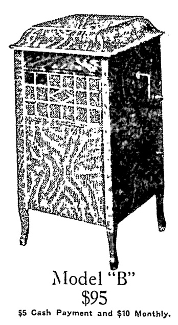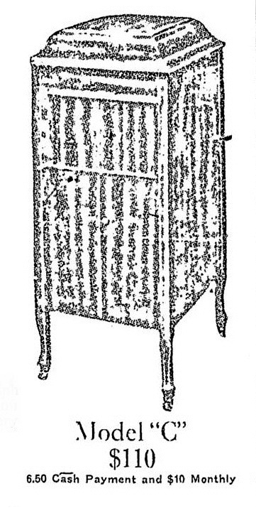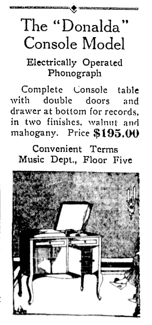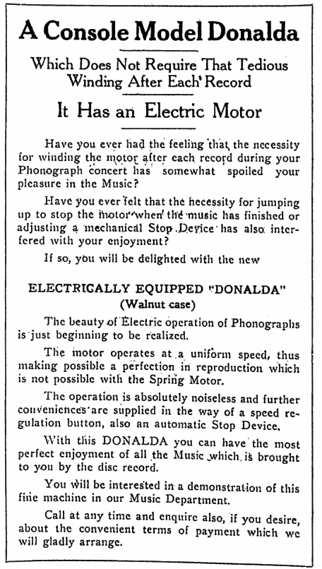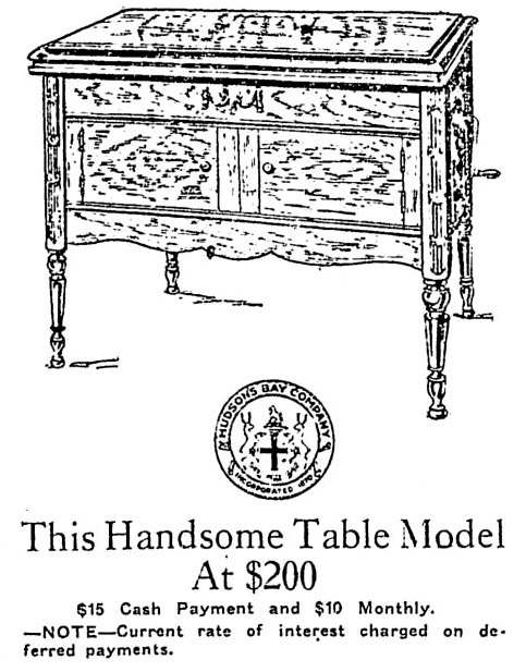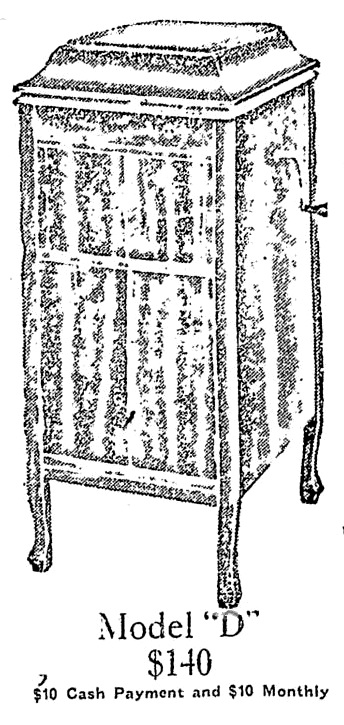 Calgary Daily Herald, October 16, 1922, pg. 18 has reference to a 'console' model with an electric motor: