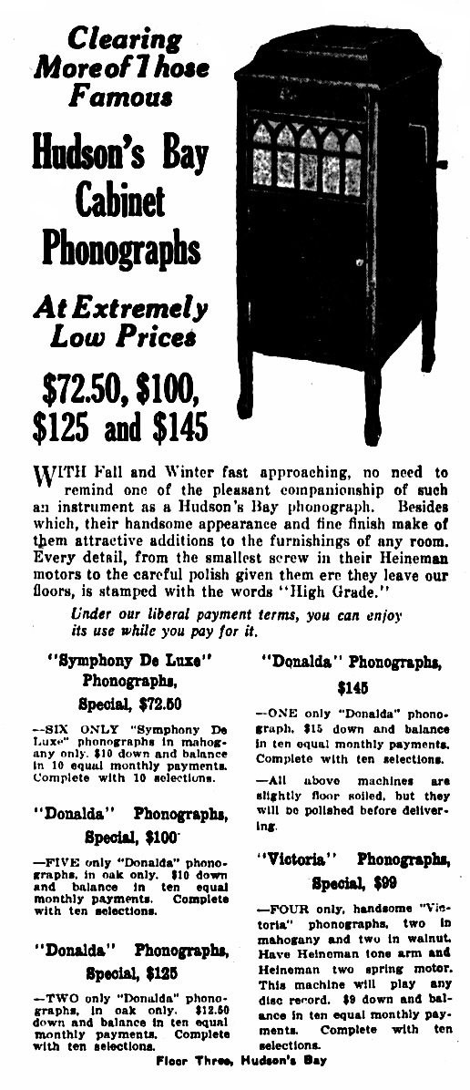 KW found the following adverts: Saskatoon Phoenix, August 11, 1922 pg. 12: