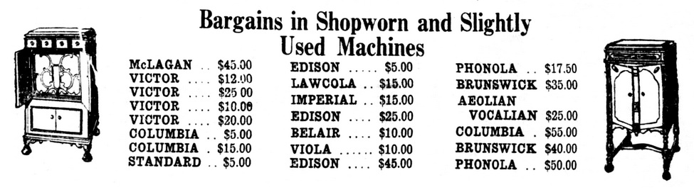 Edmonton Journal, August 19, 1929, p. 13. Detail of a classified ad by Heintzman & Co., 10139 Jasper Avenue, Edmonton, Alberta including a Lawcola phonograph.