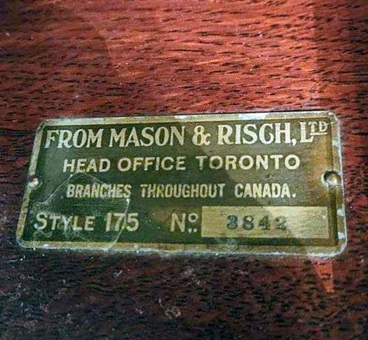 A Mason & Risch mahogany upright for sale through a Mad Picker Antiques & Collectibles online auction in 2023. Submitted by Lance Husoy.