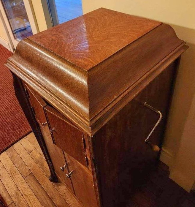 An oak upright cabinet model for sale at the September 12, 2019 CAPS Zoom auction: