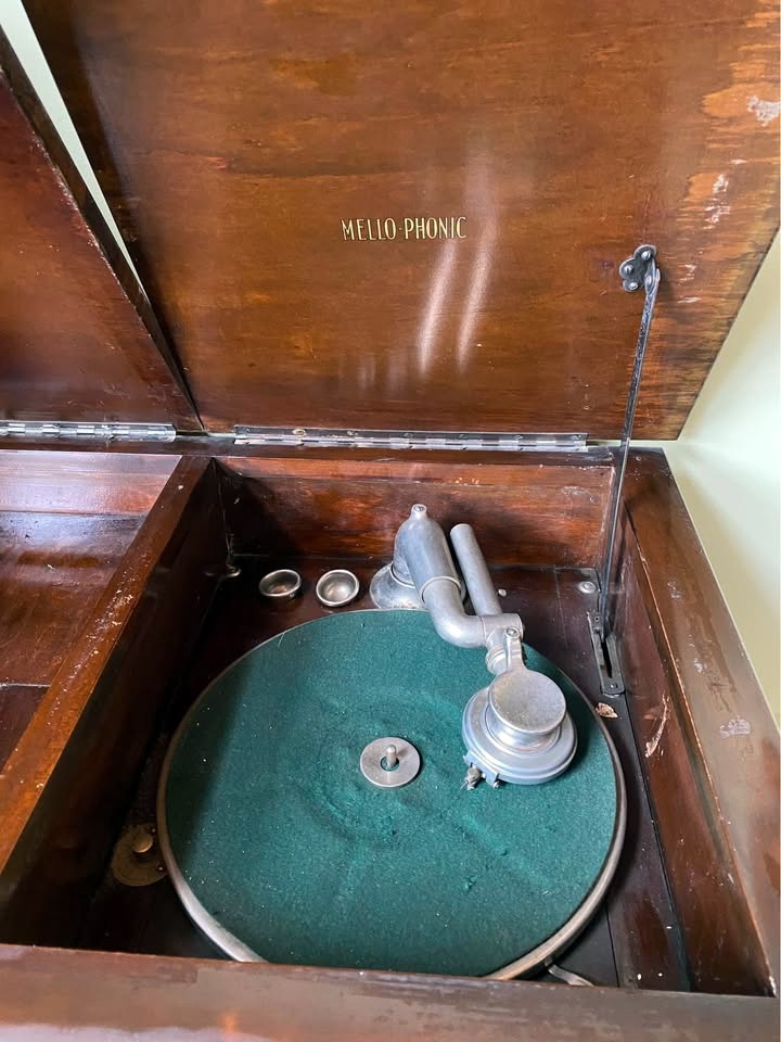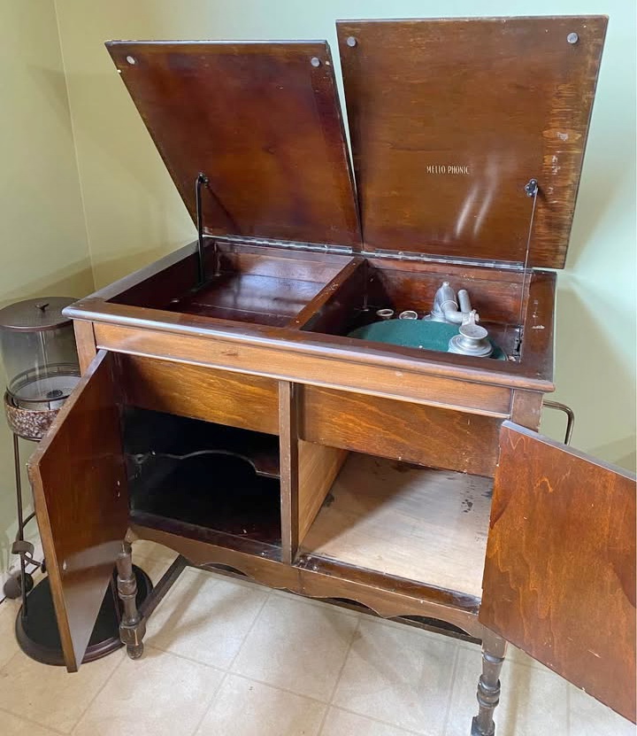 A console model "Mello-phonic" listed in Shelburne, Ontario in 2025. Spelled differently than the ads but the cabinet design is very similar to the console model depicted in the ads.
