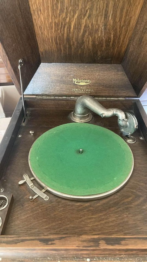 A Melotone with a more elaborate cabinet label for sale in Okotoks, Alberta in 2023.