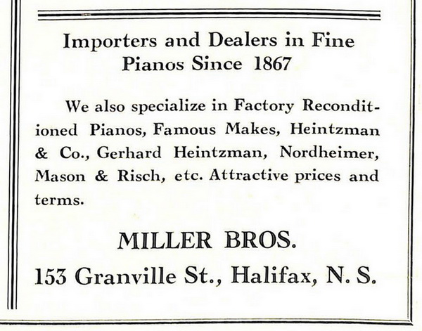 Halifax Evening Mail, August 6, 1921, p. 5. Ad for a Miller phonograph, Style "C" by Miller Bros., Arcade Building, 225 Hollis Street, Halifax, Nova Scotia.