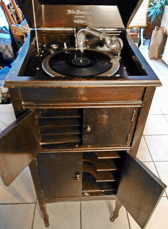Norman Brooks sent these photographs of an upright cabinet phonograph labelled: Miller Phonograph Toronto [Sold by OR Made by] Miller Bros [likely a city but illegible]