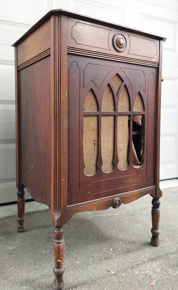 About 1926 or 1927 an orthophonic-style console phonograph labelled Minerva entered the market (see example below), with a cabinet presumably built by The George McLagan Furniture Co., Ltd., Stratford, Ontario because the grill design is identical to the 1928 Minerva batteryless radio.