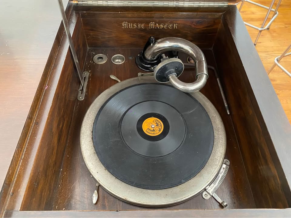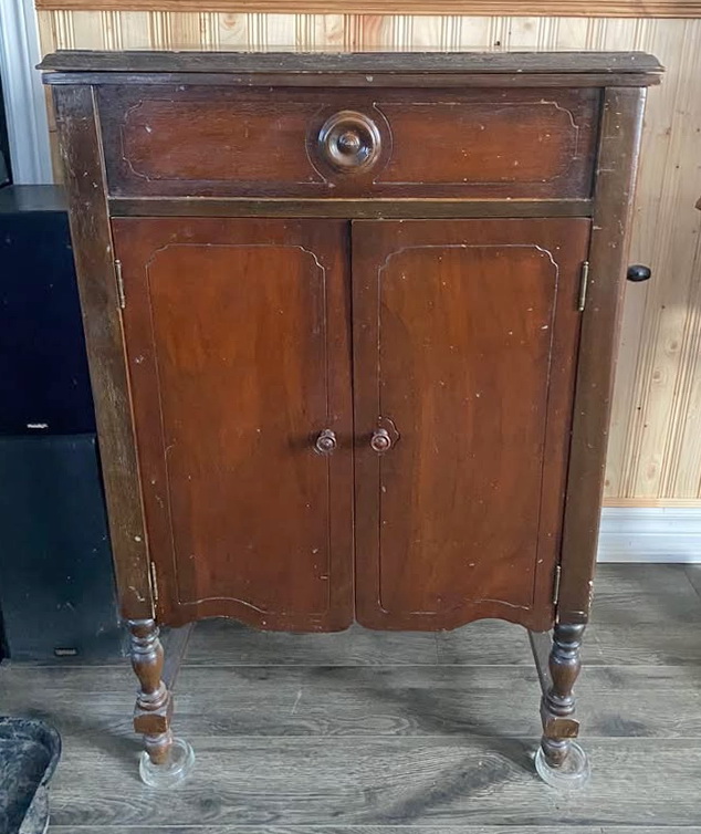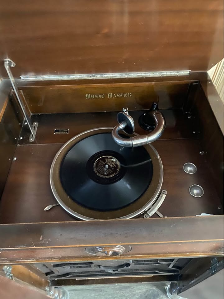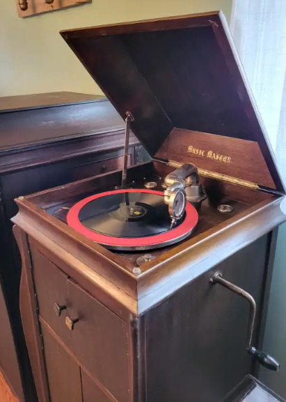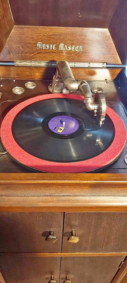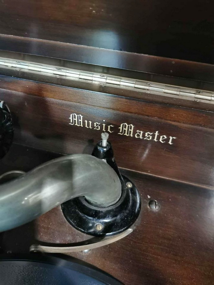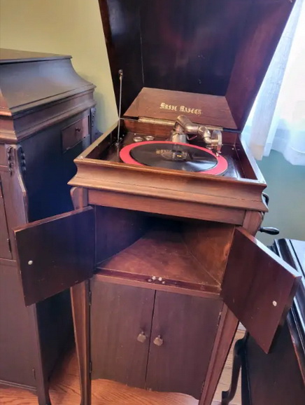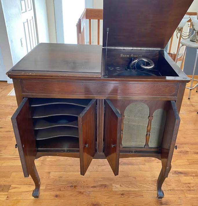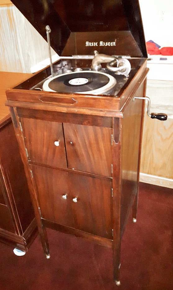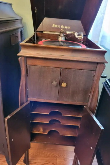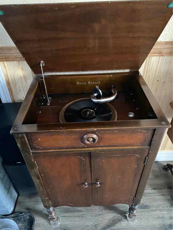 Another upright cabinet Music Master phonograph for sale in Brampton, Ontario with a different cabinet logo.