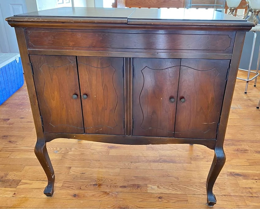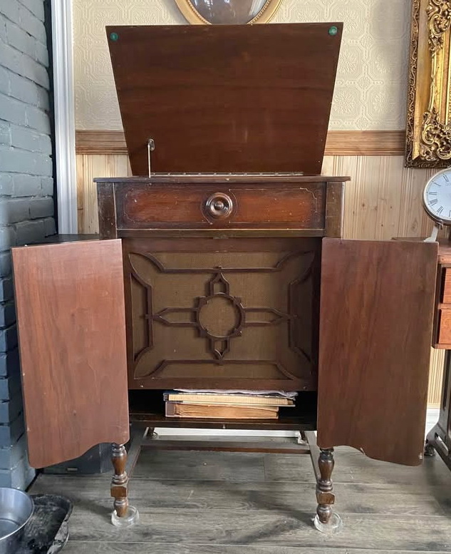 An Orthophonic-style console cabinet Music Master for sale in St Sebastien, Quebec in early 2025.