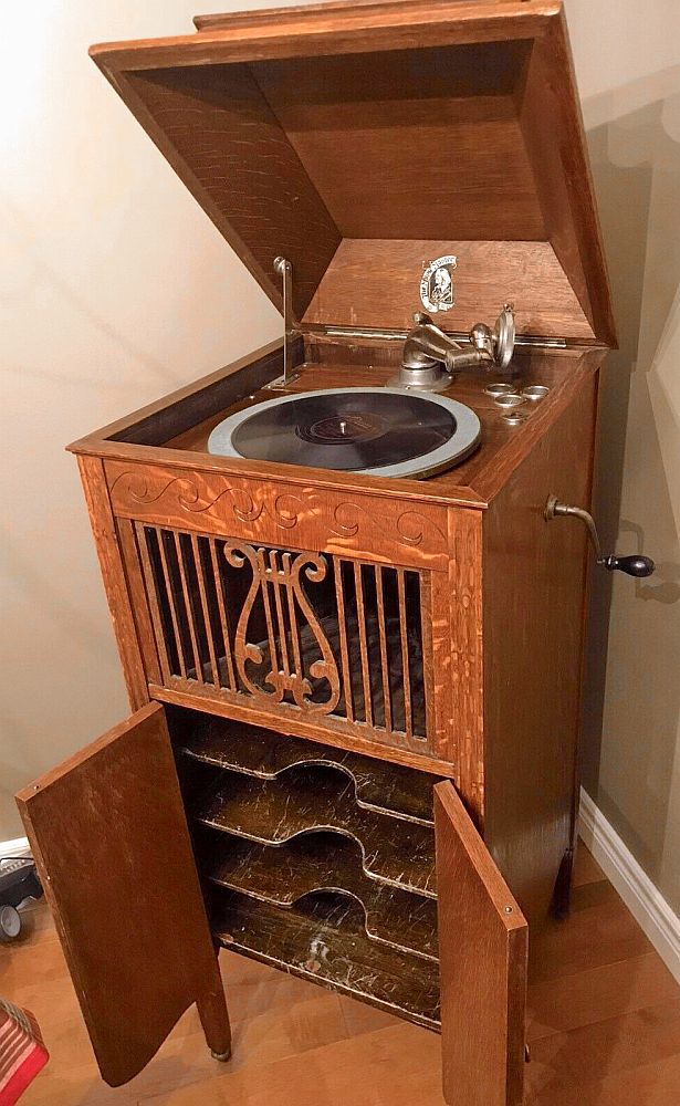 TDS October 25, 1920 p. 13. A model similar to the phonograph in the YouTube video but with two doors.