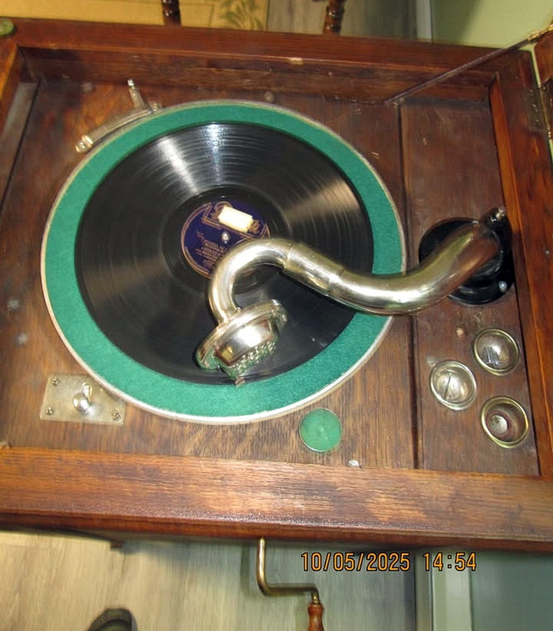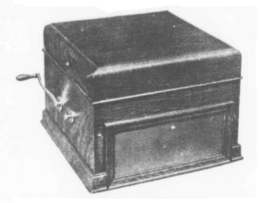 "The fact that the head of this firm, Mr. R.P. Newbigging, has for long had an intimate knowledge of the talking machine business and has already well established connection all over the Dominion, augurs well for Clarion Musicphone. The accompanying photograph shows the cabinet of this machine, which was made in the year 1909 with a screen in the front of fine brass wire mesh. "Not only was this cabinet made in our factory", concluded Mr. Newbigging, "but the two-spring motor, tone arm and soundbox were all made in Hamilton. For the construction of the cabinet we had nothing to go by but a verbal description of the machine. It is a far cry from this first attempt in 1909 to the electrically driven machine that we have today. From that day to this we have never stopped thinking talking machines."