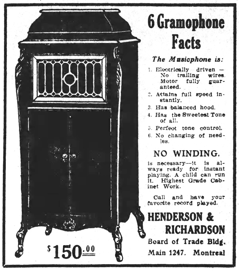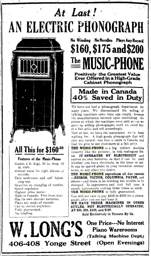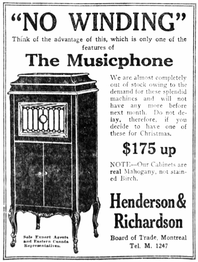 Canadian Music Trades Journal. In August 1916 they introduced their own phonograph, the "Clarion Musicphone".