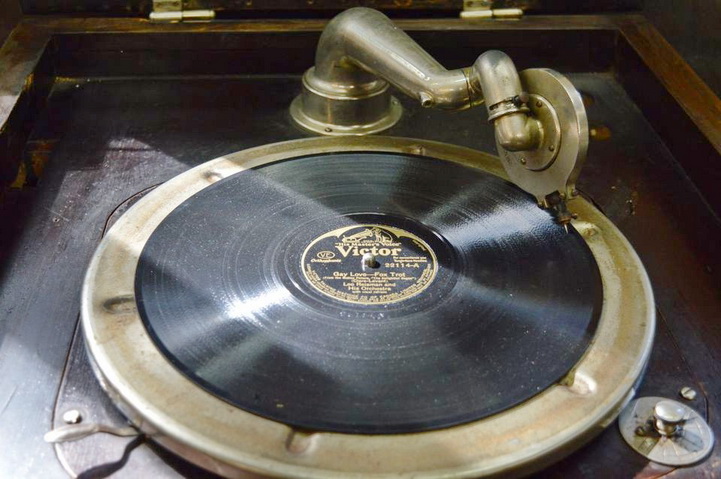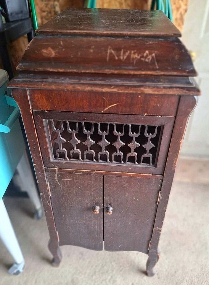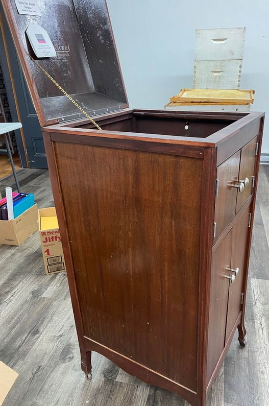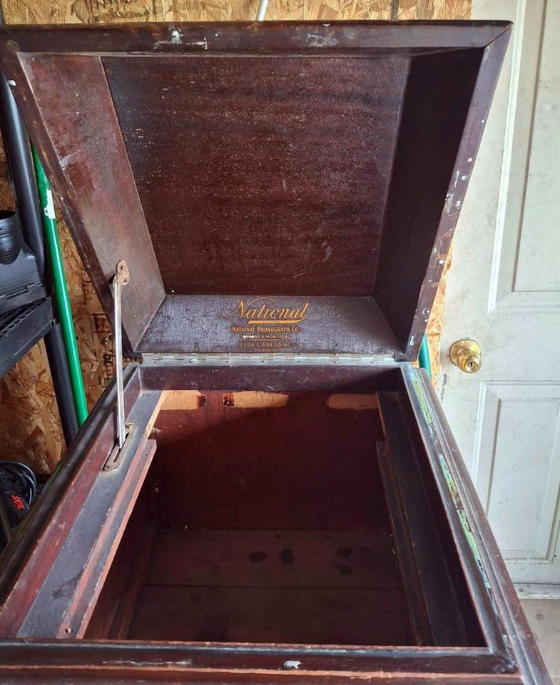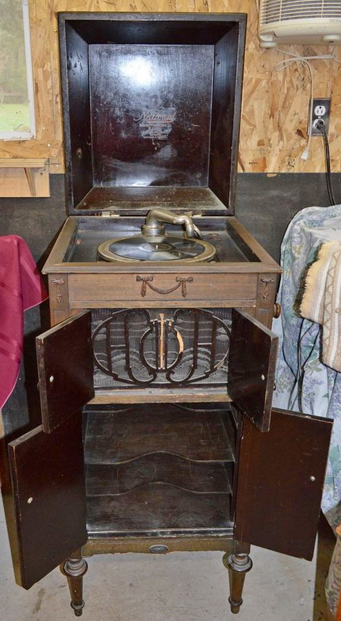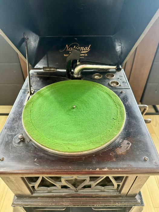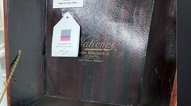 A National phonograph, without the mechanism, for sale in Quebec in 2023.