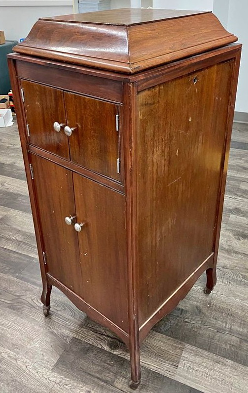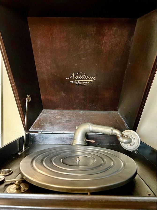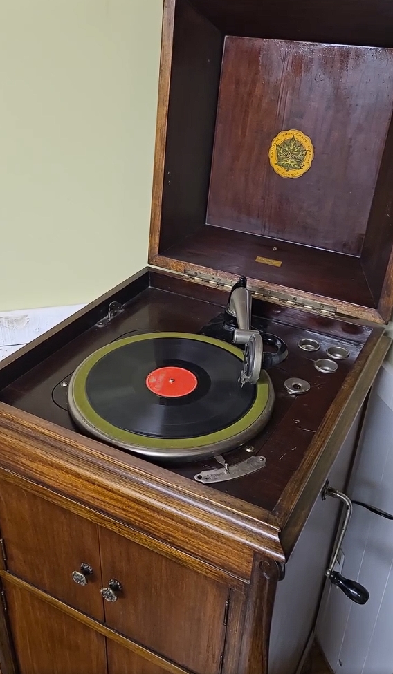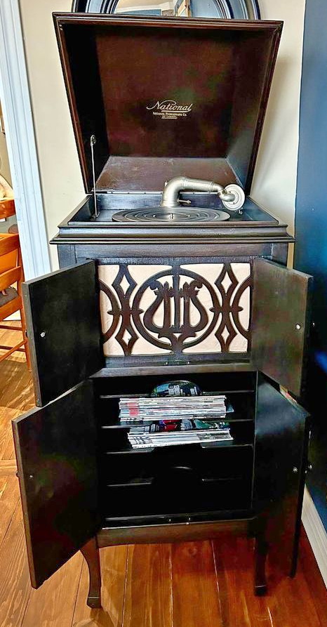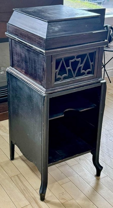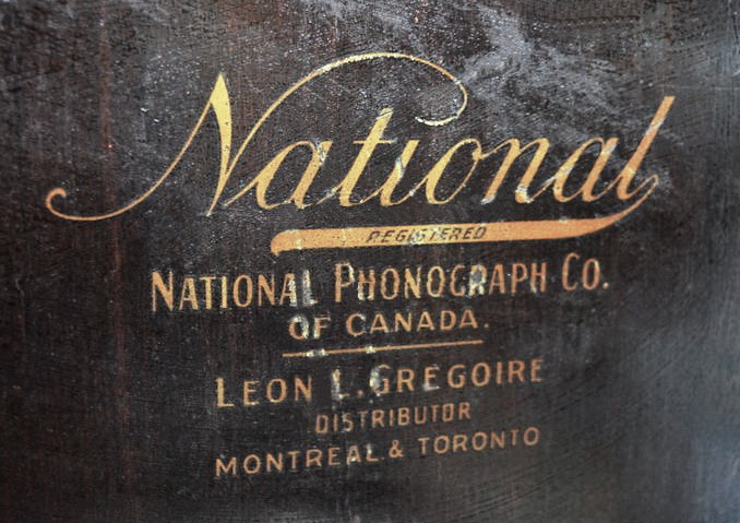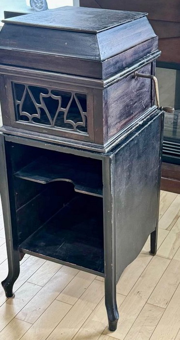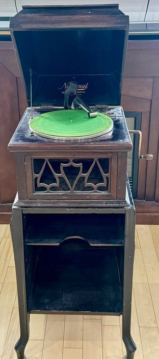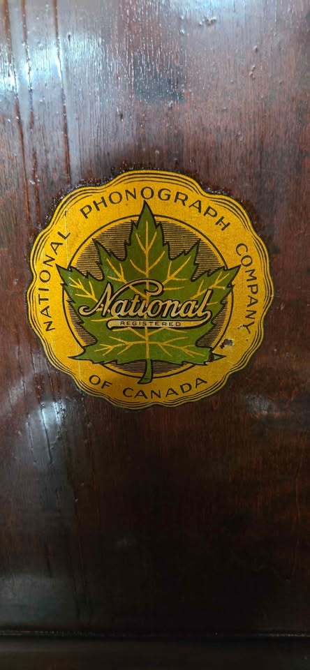 A National Phonograph Company of Canada upright phonograph with an elegant new logo. For sale through Facebook Marketplace in 2024 in Hawkesbury, Ontario.
