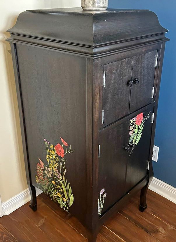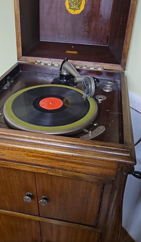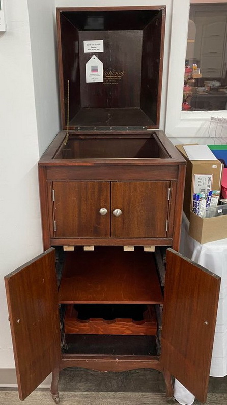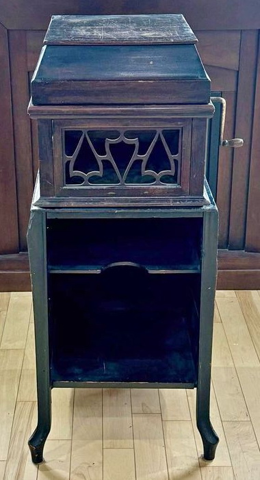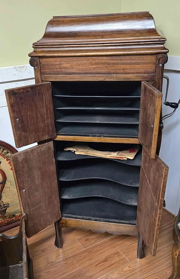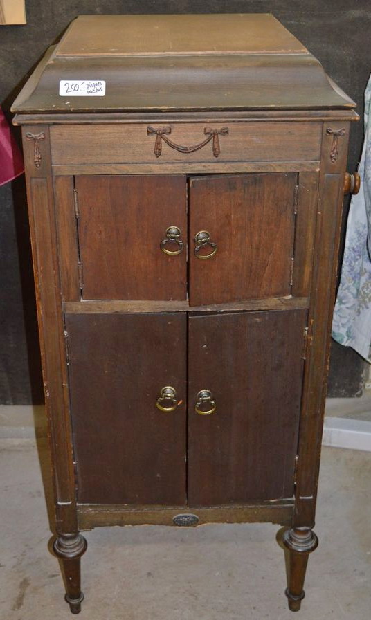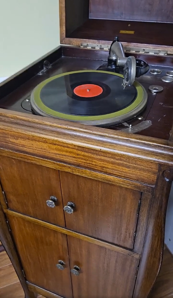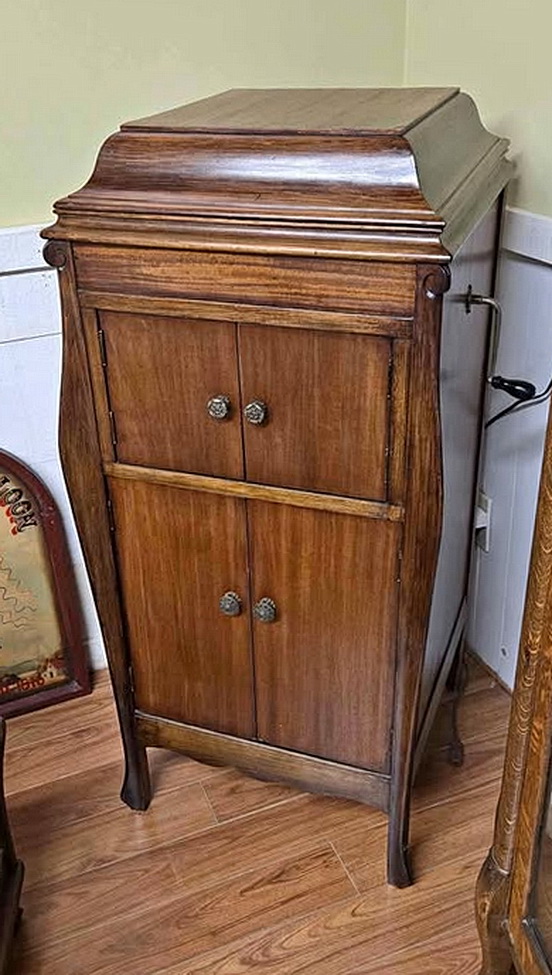 A National Phonograph Company of Canada upright phonograph with an elegant new logo. For sale through Facebook Marketplace in 2024 in Hawkesbury, Ontario.