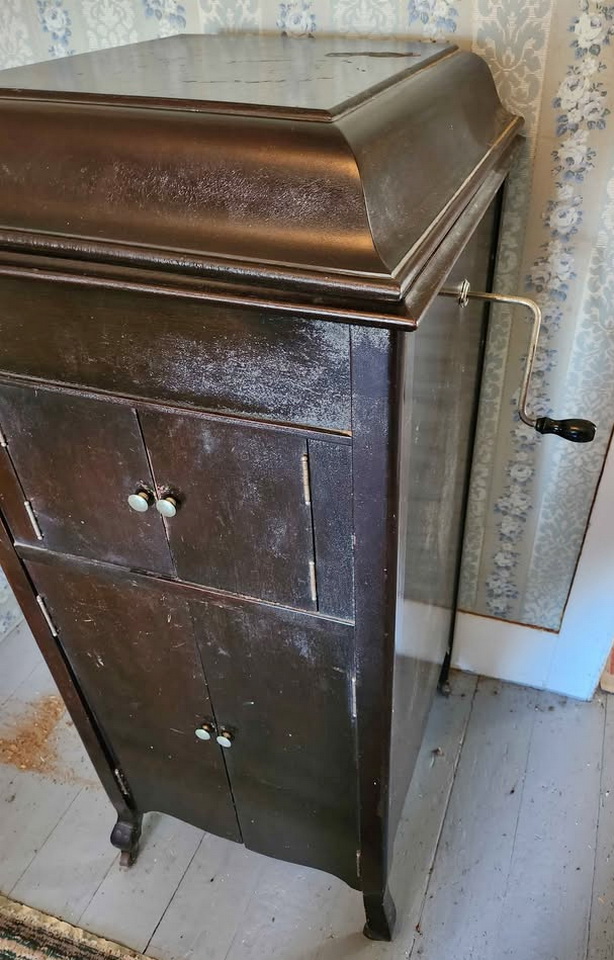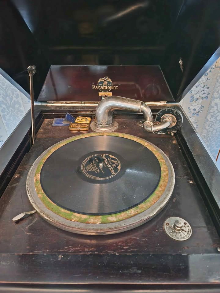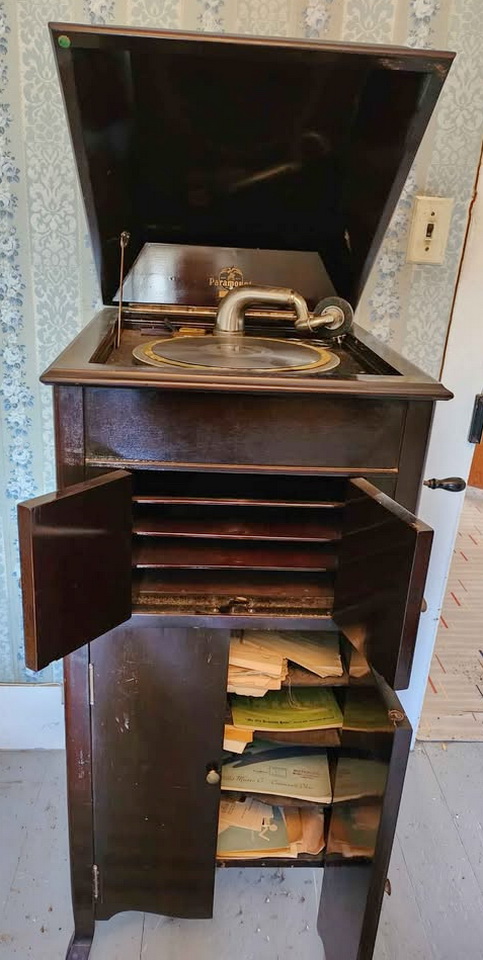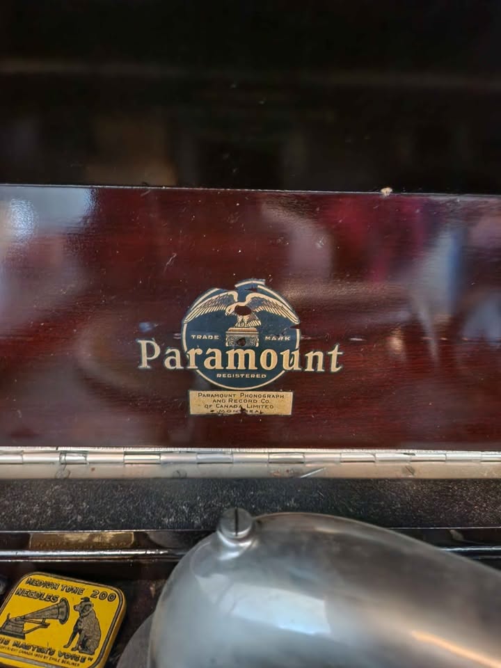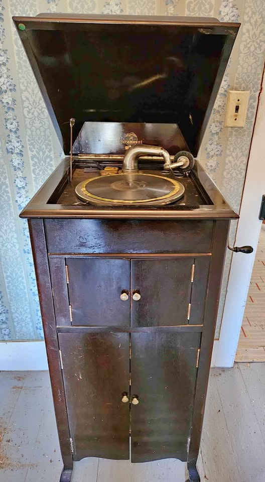 A Paramount upright model phonograph for sale through Facebook Marketplace in Blandford-Blenheim, Ontario in 2025.