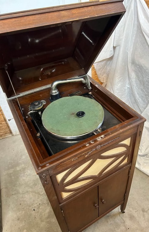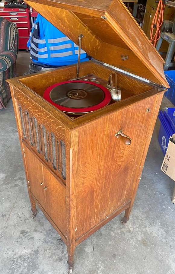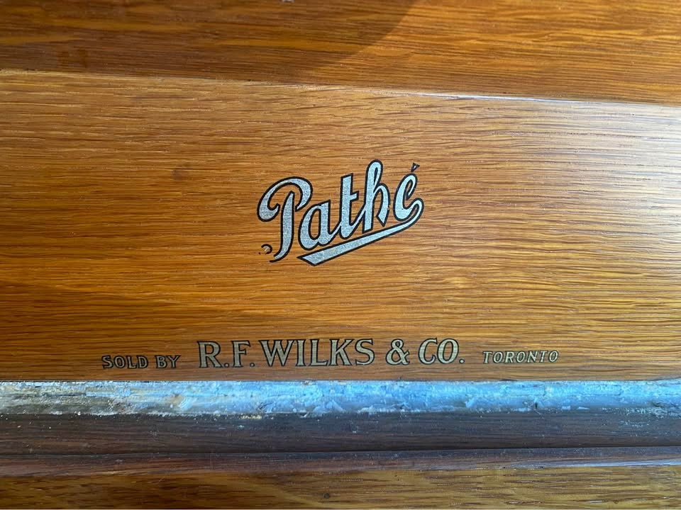 A Pathé upright phonograph for sale in Quinte West, Ontario in 2025.