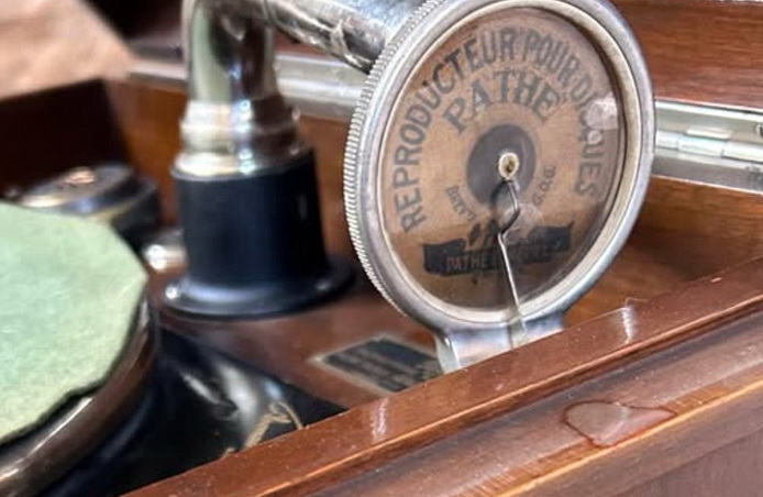 A Pathé upright phonograph for sale in North Hatley, Québec in 2024.