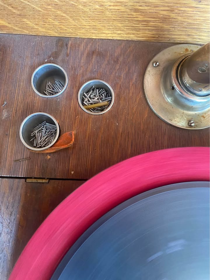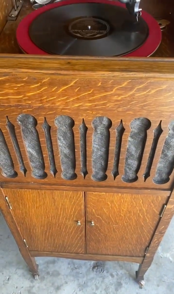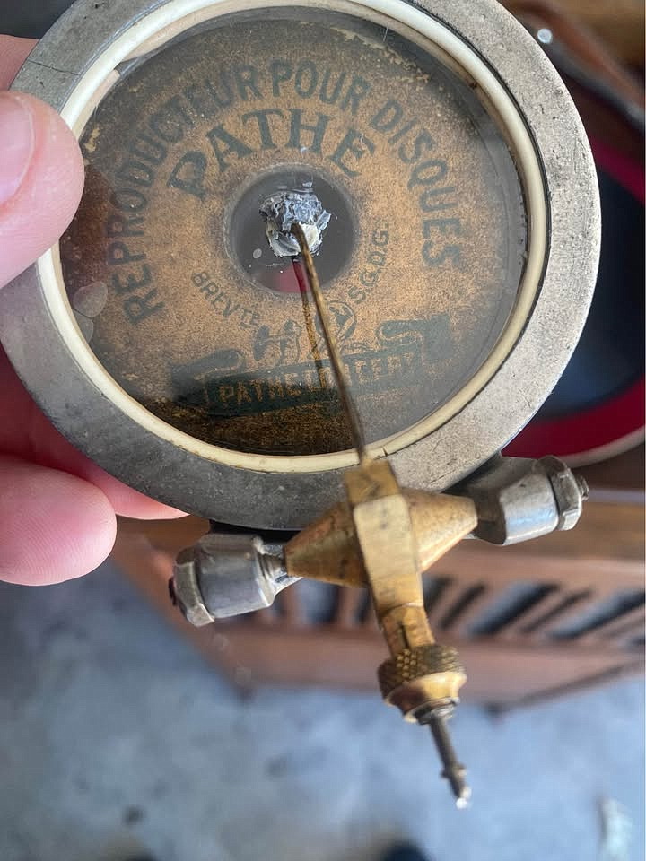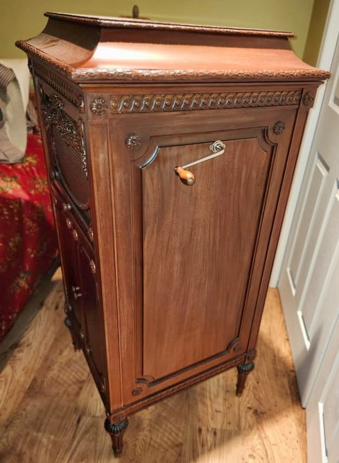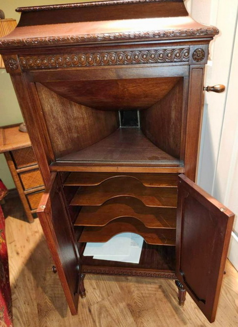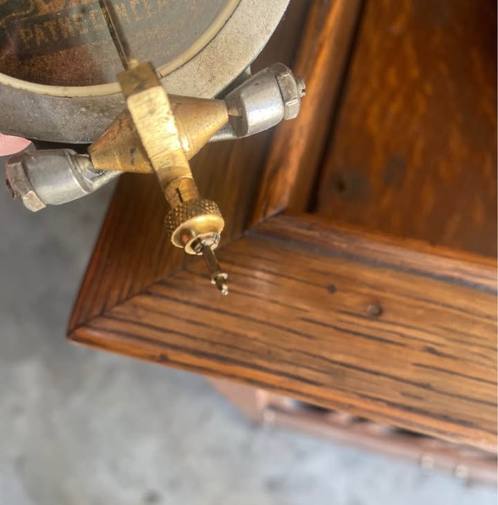A Pathé upright phonograph for sale in Castlelgar, B.C. in 2025. Photos supplied by Lance Husoy.