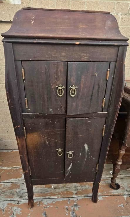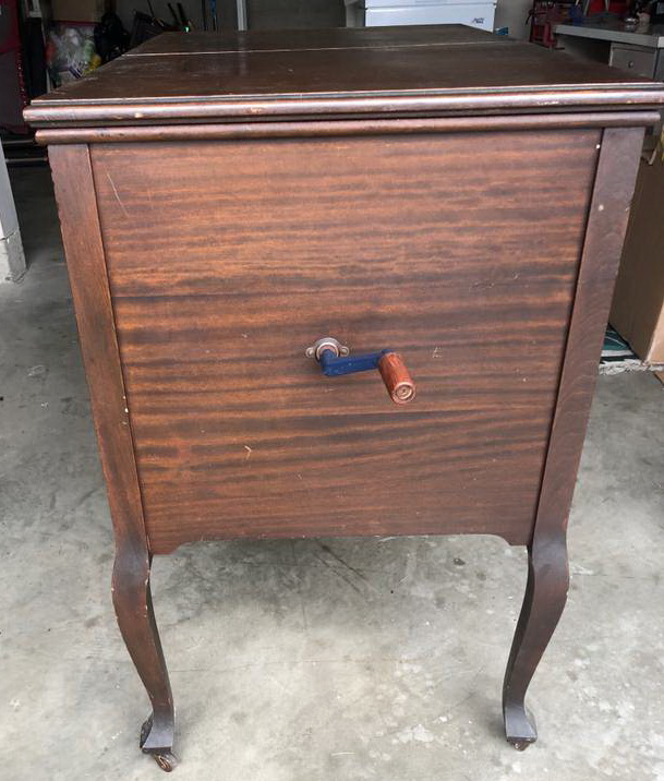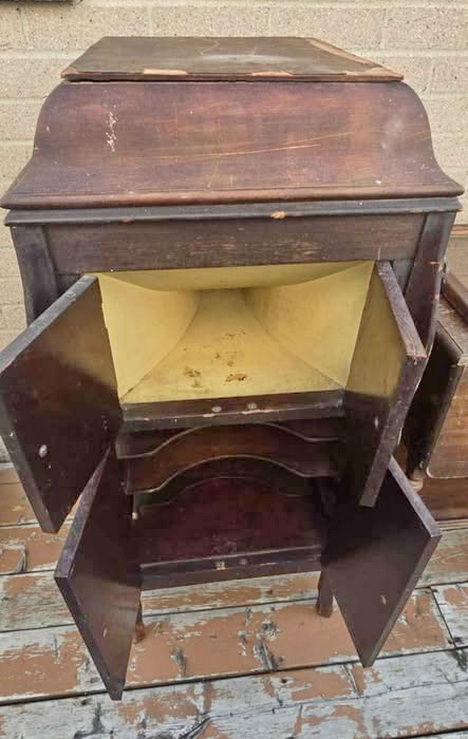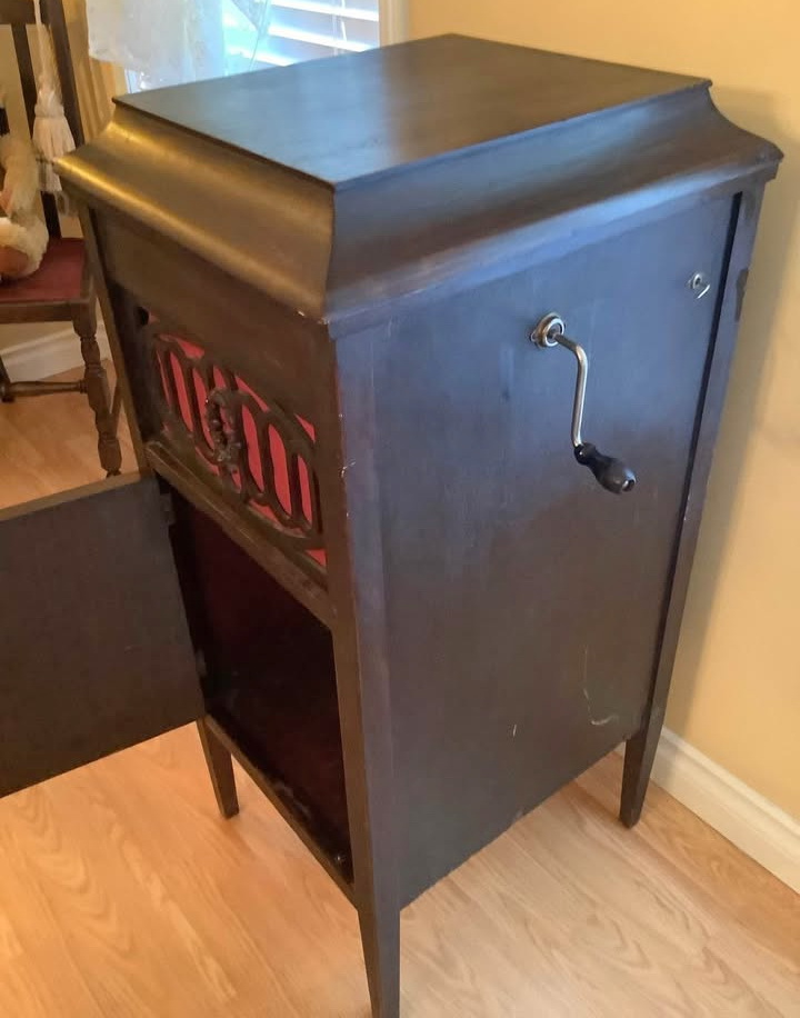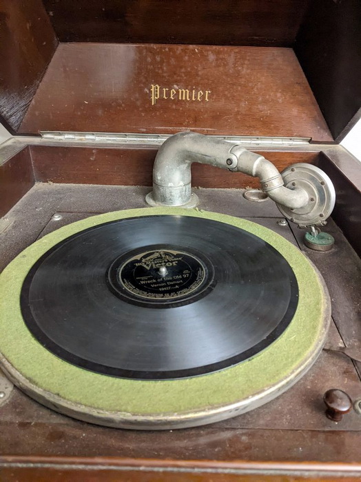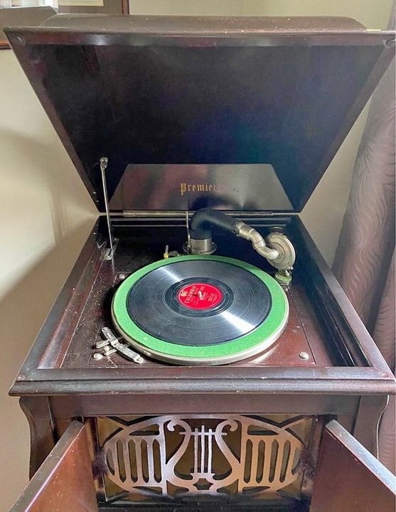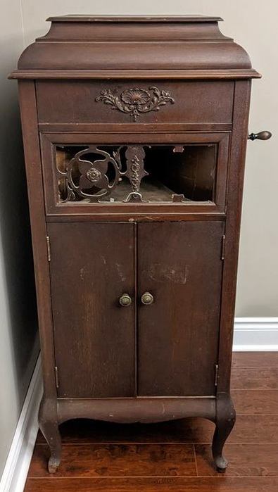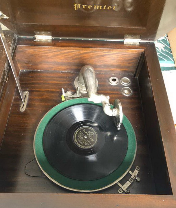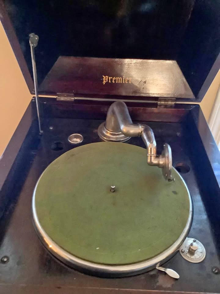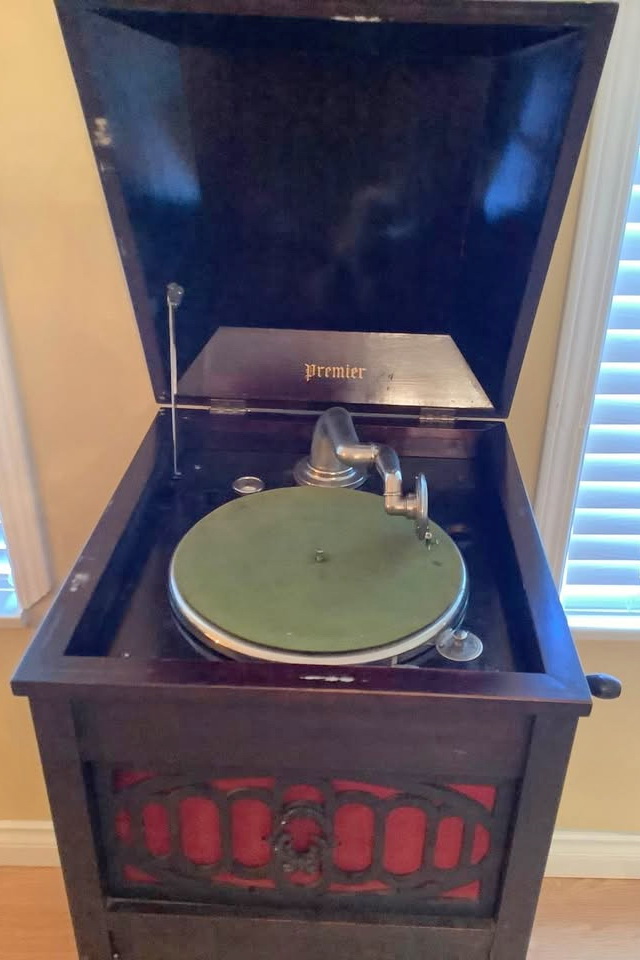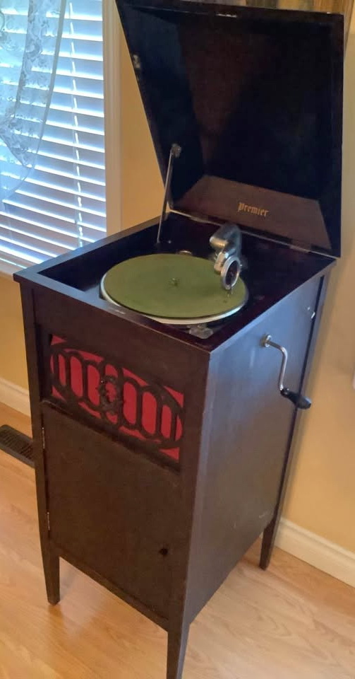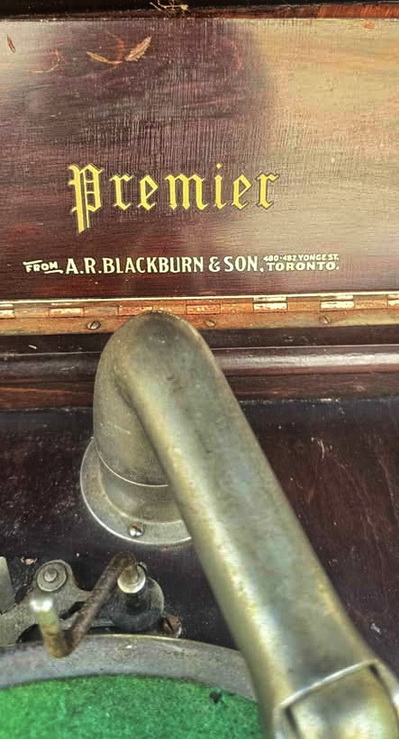Steve Redman supplies two photographs of a "Premier" upright talking machine for sale in Toronto in 2023.