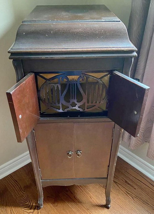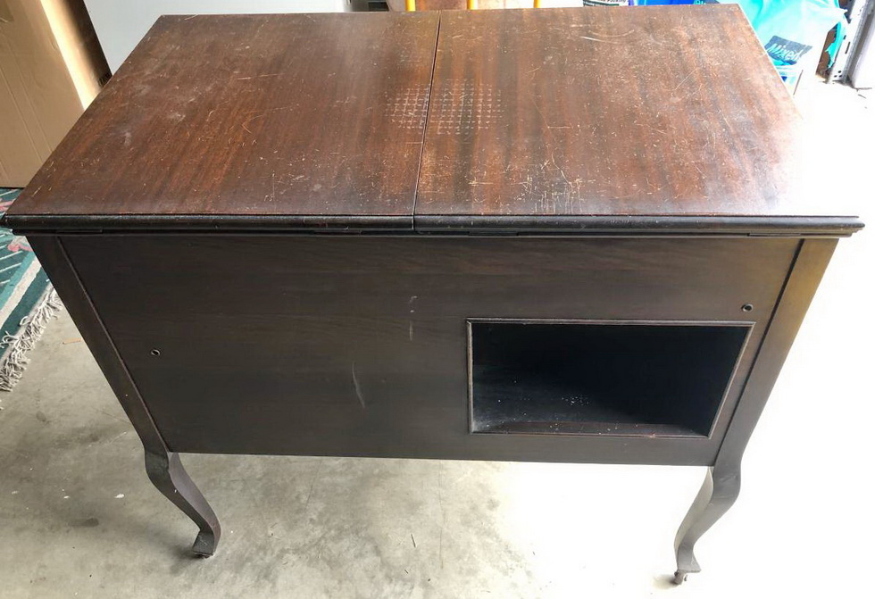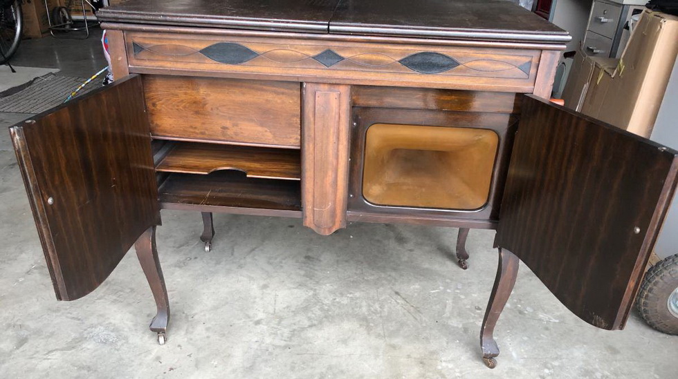 A Premier console model for sale through Craigslist in Victoria, B.C. in 2024. Submitted by Lance Husoy. Curiously, this Premier has the Ontario Premier label on the cabinet lid, yet it was being sold from the city that produced the British Columbia Premier phonograph!
