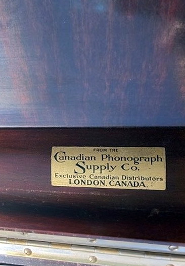 Another "Canadian Phonograph Supply Company, Exclusive Canadian Distributors, London, Canada" label on a Starr machine for sale in Calgary, Alberta in 2025.