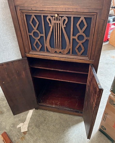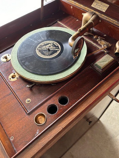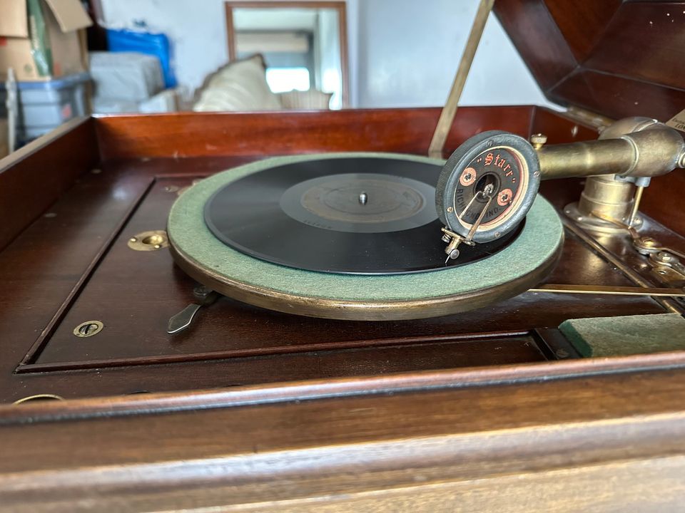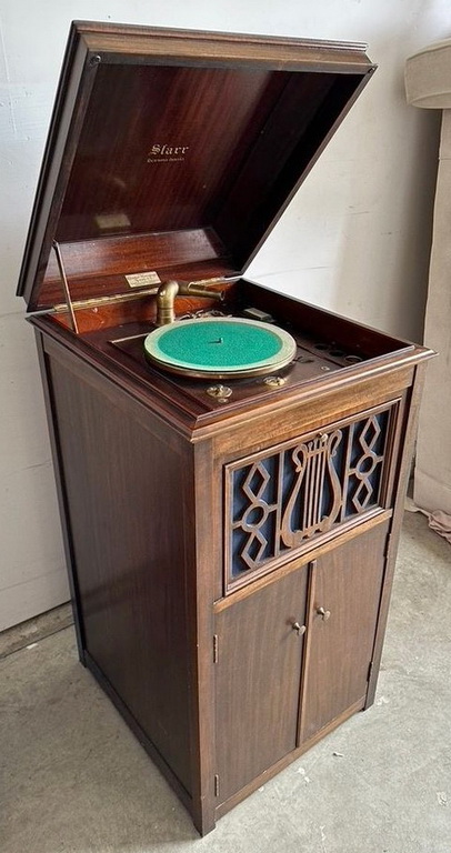 Starr "Style 2" phonograph, unfortunately missing its legs, for sale in Nanaimo, B.C. in 2024. Labelled "Canadian Phonograph Supply Company, Exclusive Canadian Distributors, London, Canada". Photographs submitted by Lance Husoy.