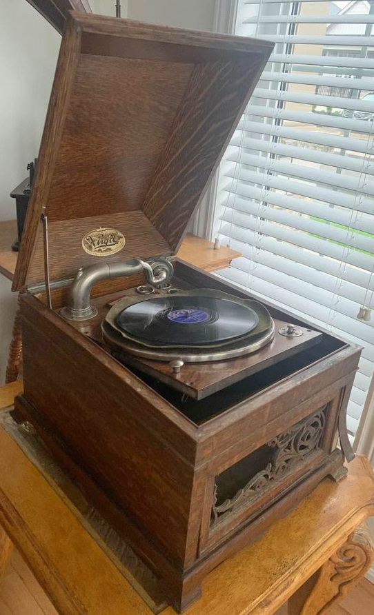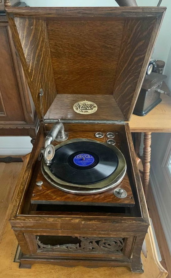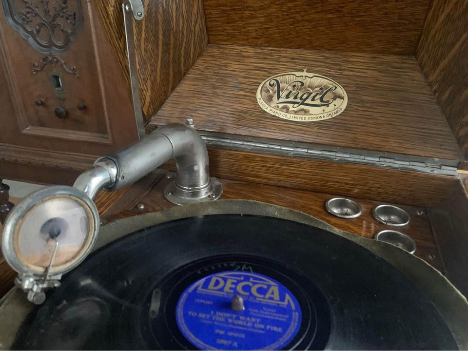 An upright Virgil phonograph for sale in Loyalist, Ontario in 2023.