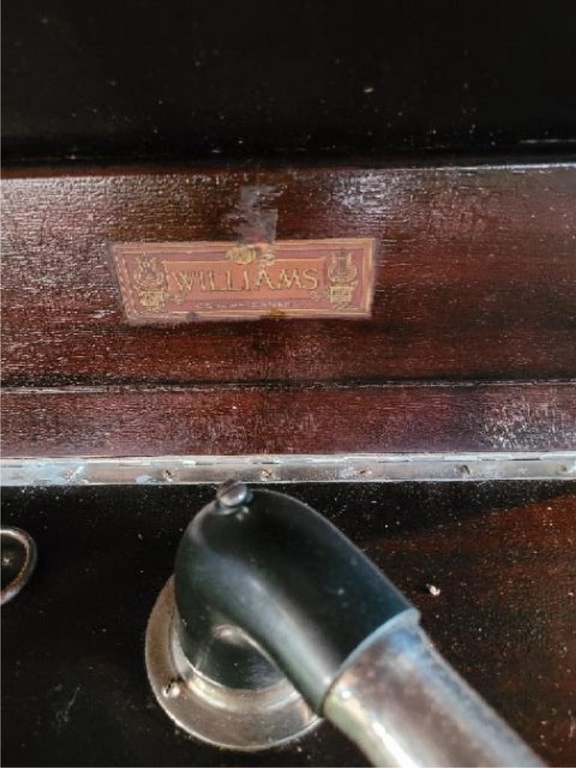 A Williams phonograph manufactured expressly for the J.M. Greene Music Co. Ltd. which was a dealer in Edison phonographs in Peterborough, Ontario. Contributions to the Canadian Antique Phonograph Society Facebook Forum by Jeff Stratham and Paul Alexander.