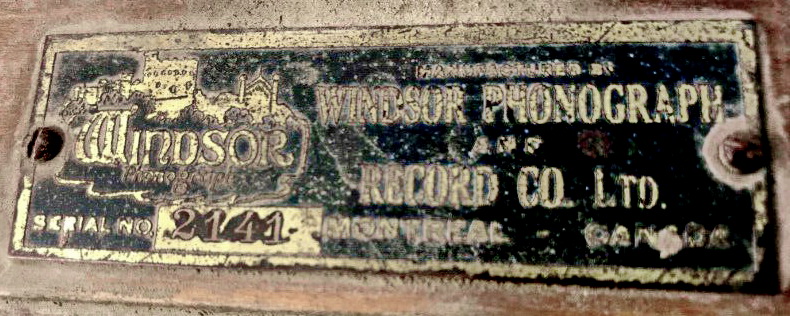 ID plate from a Windsor table model phonograph in very distressed condition. Photo submitted by Norman Brooks.