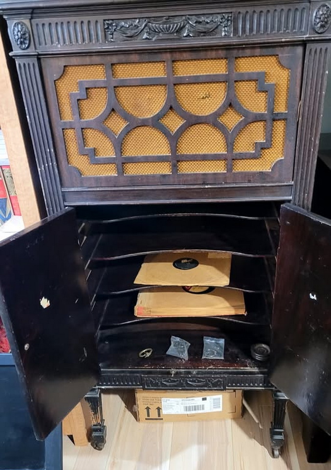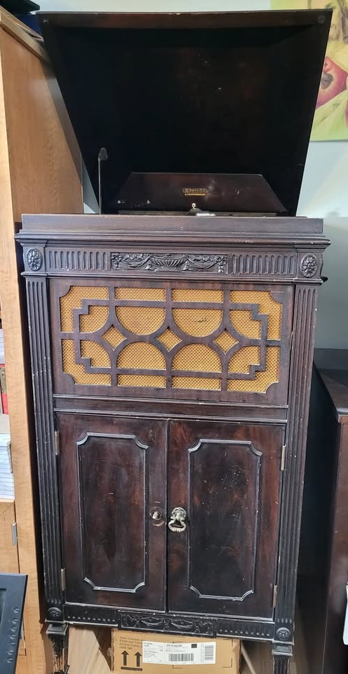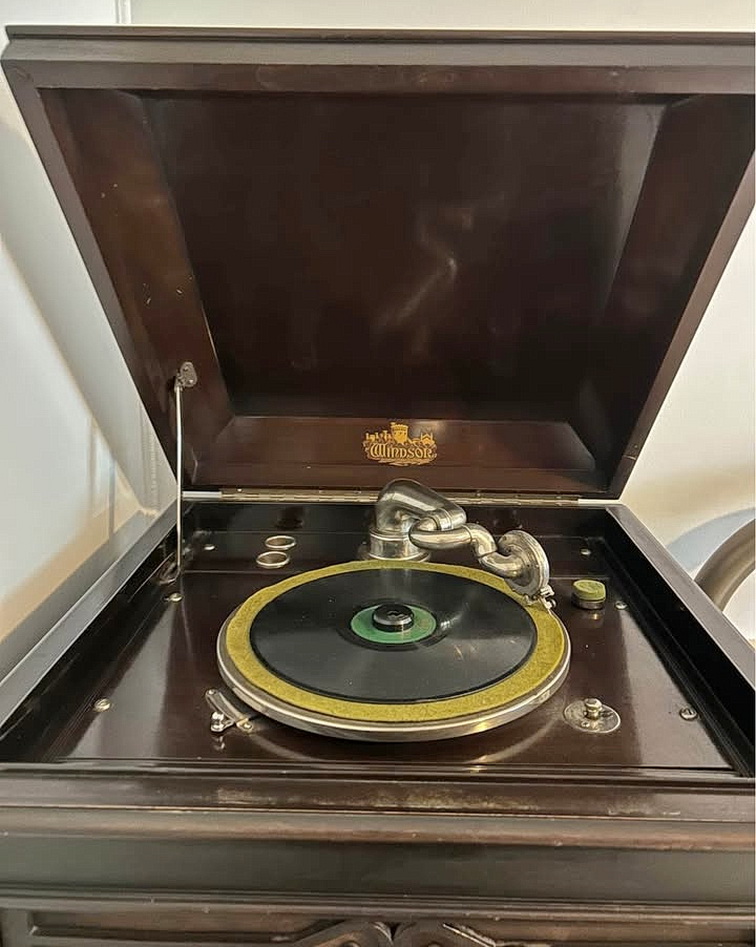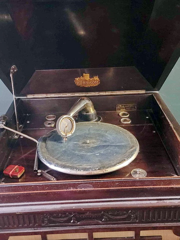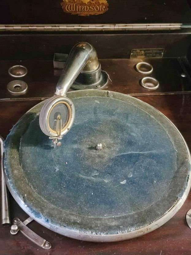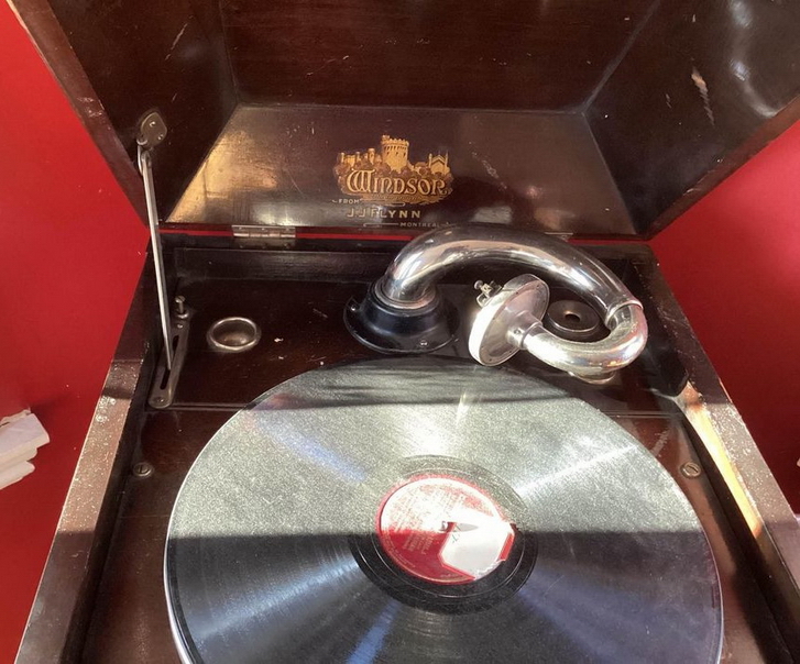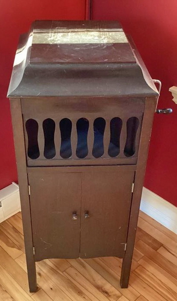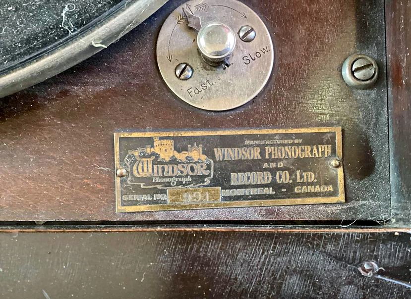 A Windsor upright phonograph for sale in Chateauguay, Quebec in 2023. Photographs submitted by Mike Bryan.