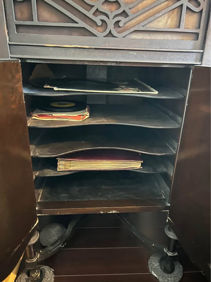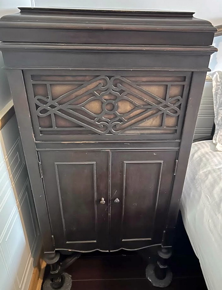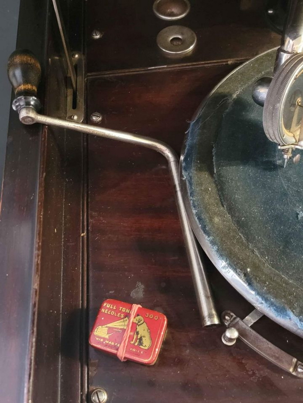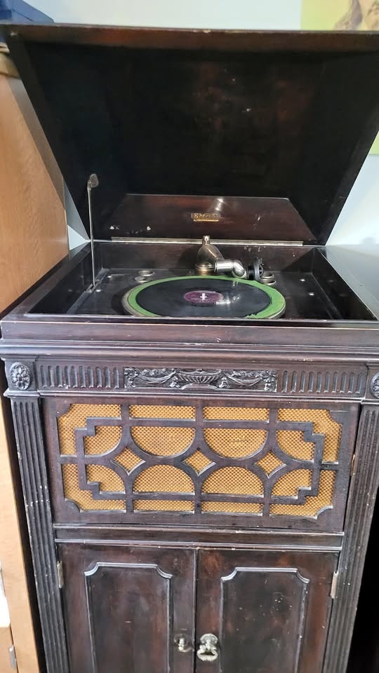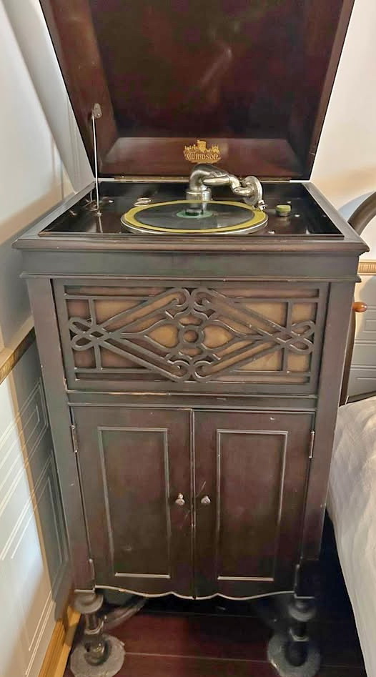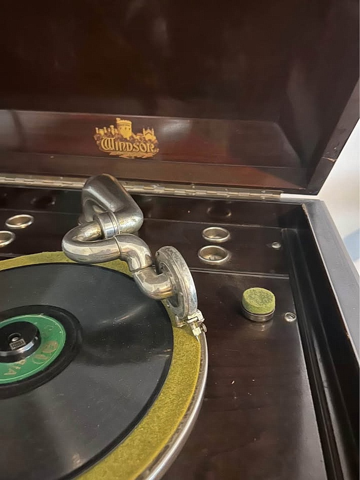A Windsor upright phonograph for sale in Chateauguay, Quebec in 2023. Photographs submitted by Mike Bryan.