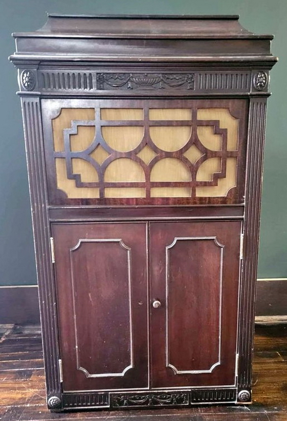 Talking Machine World, July 1920, p. 226: "Cabinet gramophones of high class finish and design would seem to be a specialized trade in