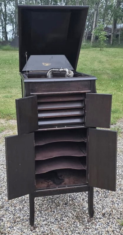 A Melotone with a more elaborate cabinet label for sale in Okotoks, Alberta in 2023.