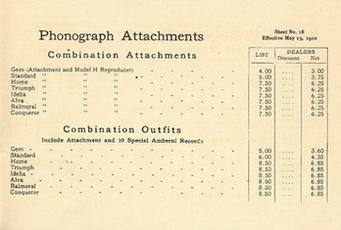 an existing phonograph to the latest technology or newest fashion. These included Edison combination attachments, repeaters, horn cranes, horns, and other accessories. Companies such as Hawthorne and Sheble and