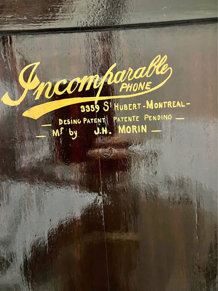 The "Incomparable Phone" was apparently manufactured by J.H. Morin, 3359 St-Hubert, Montreal, Quebec. It bears a strong resemblance to the equally unattractive Canadian-made Violian phonograph.