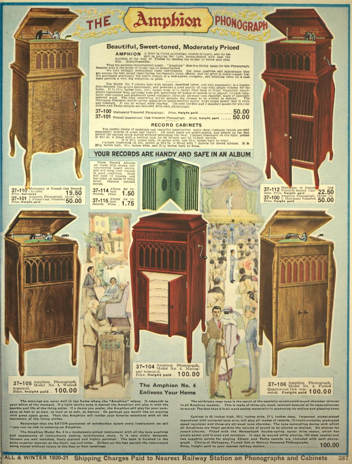 The Amphion phonograph was manufactured in Canada for sale by Eaton's.