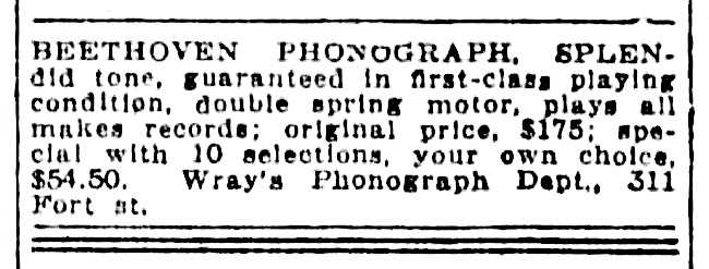 A Beethoven phonograph, labelled "The Beethoven", for sale in Regina, Saskatchewan in 2023.